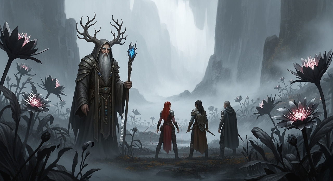 그들은 마누크가 은둔하고 있다는 ‘울무안 계곡’으로 향했다. 그곳은 강철빛 안개와 기이한 철꽃들이 피어나는 지역으로, 지도에서도 지워진 땅이었다. 그리고 그 안개 속에서, 드루이드 마누크가 그들을 기다리고 있었다.