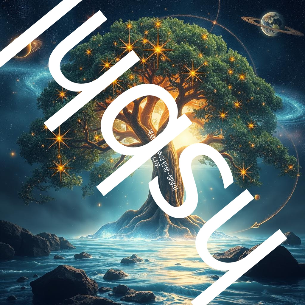 뻗어 나왔다. 가지마다 수많은 별과 행성이 빛났고, 나무의 뿌리는 강을 통해 모든 우주로 연결되어 있었다.