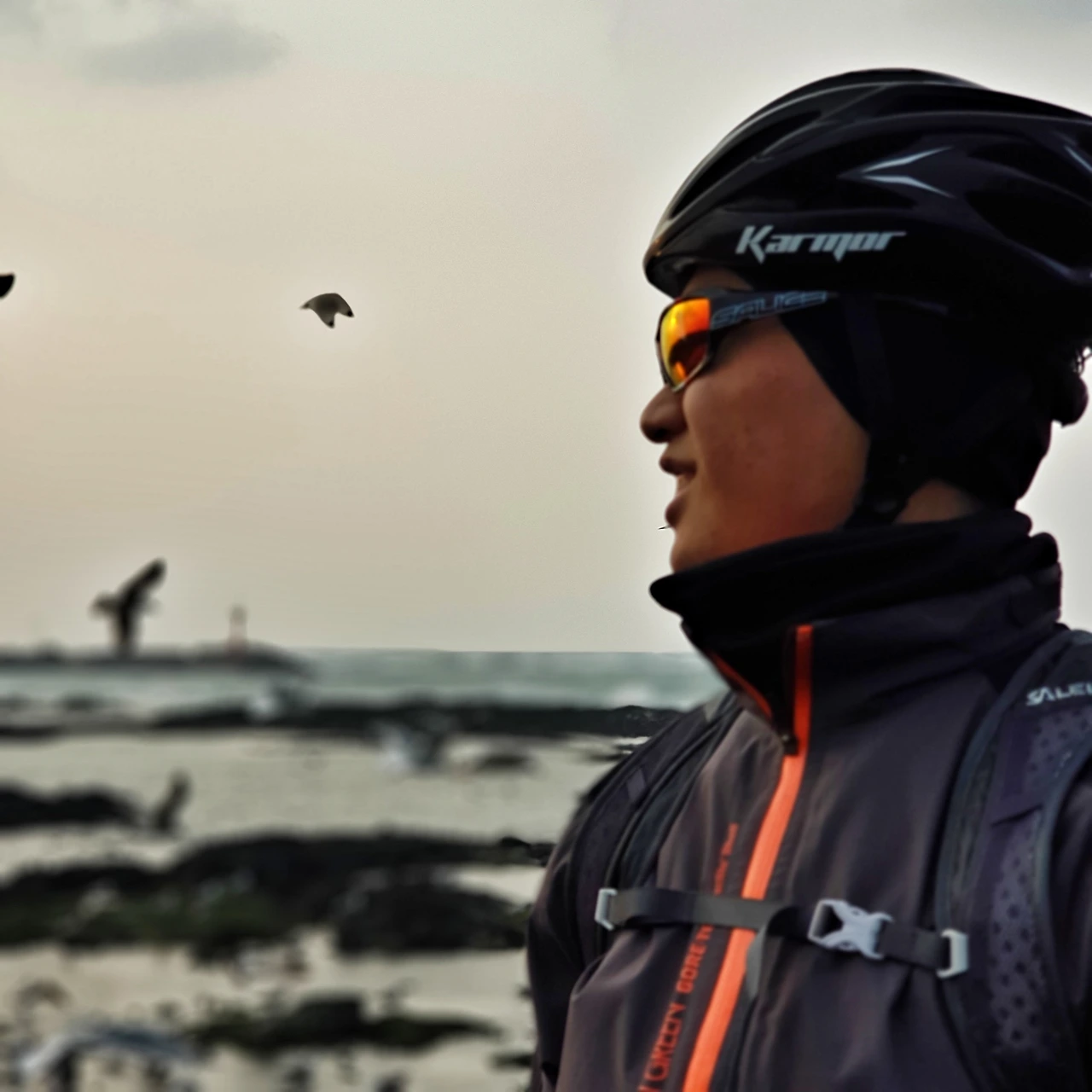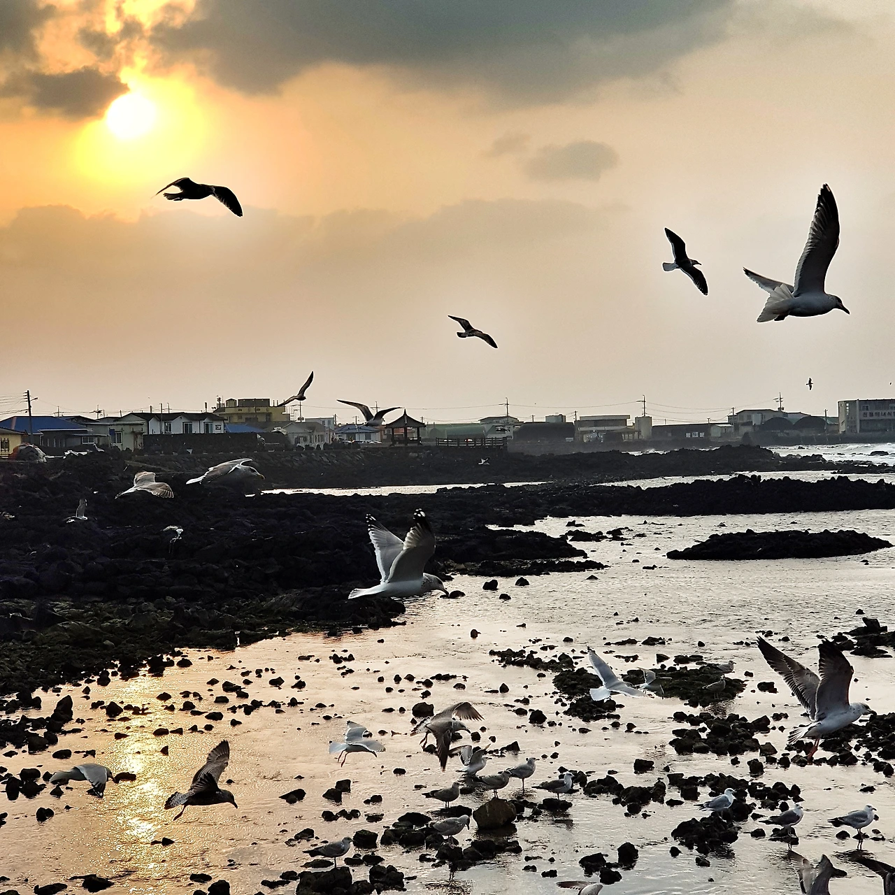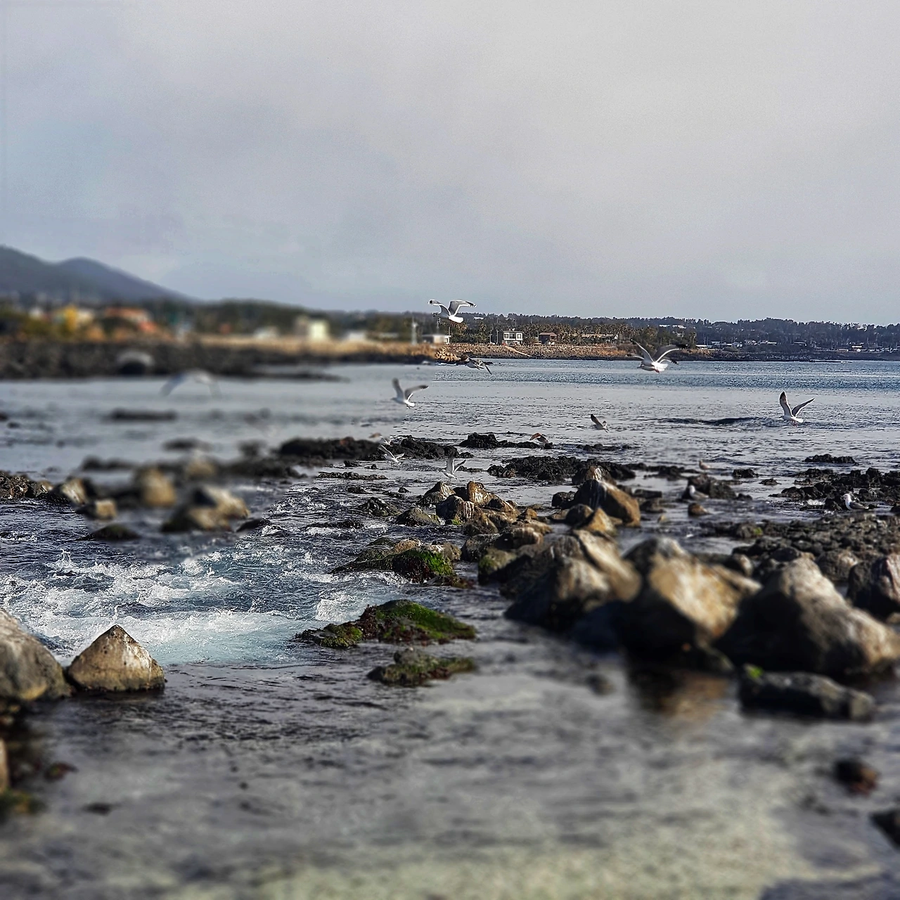 제주도의 해안도로를 자전거로 여행하다 보면, 해변 바위 위로 갈매기와 오리들이 무리지어 빼곡하게 머무는 모습을 만나게 되는데, 정수처리시설과 늘 함께 있는 것을 보면, 육지의 물을 바다로 내보내는 곳에서, 섞여내려오는 먹거리를 기다리는 것이라 여겨본다. 덕분에 새우깡으로 유혹하지 않고서도 가까이 활공하는 갈매기들의 모습은 라이딩 내내 볼 수 있다.
