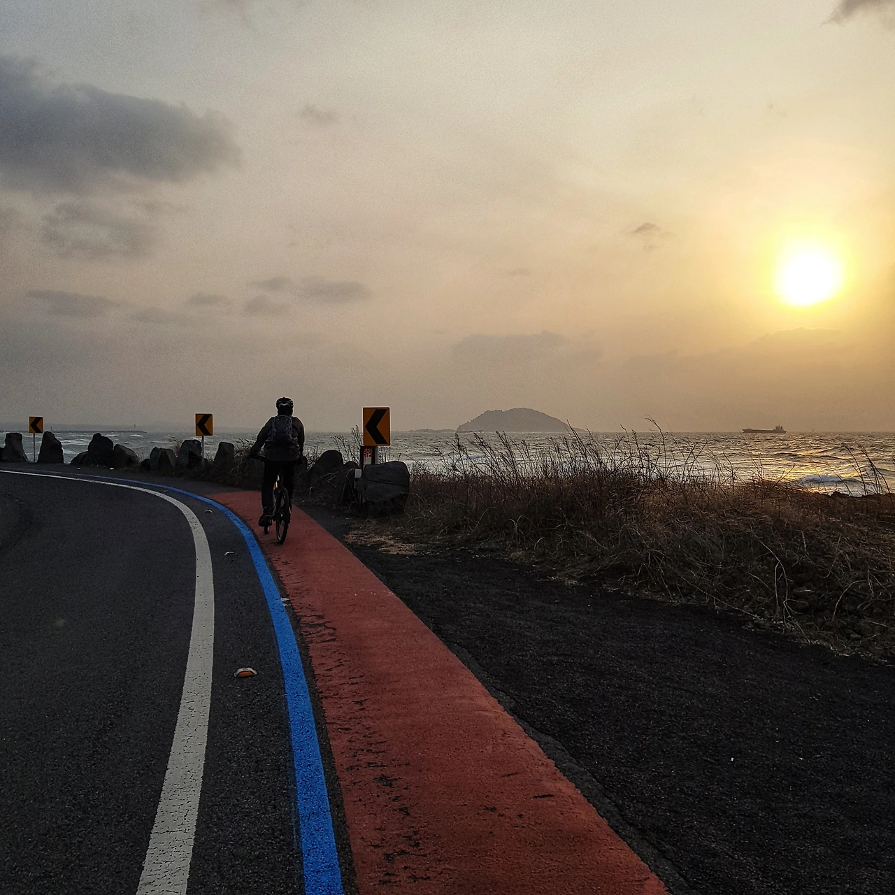 동쪽에서 제주시로 들어오는 코스는 겨울 바람과 잘 못 만나면 힘든 여정이 될 수도 있지만, 자기는 운이 좋다는 아들의 말을 인정하지 않을 수 없다. 하늘도 푸르고 바람도 선선하여, 기분좋은 라이딩으로 아들과의 두번째 제주도 자전거 일주를 마무리할 수 있을 것 같다.