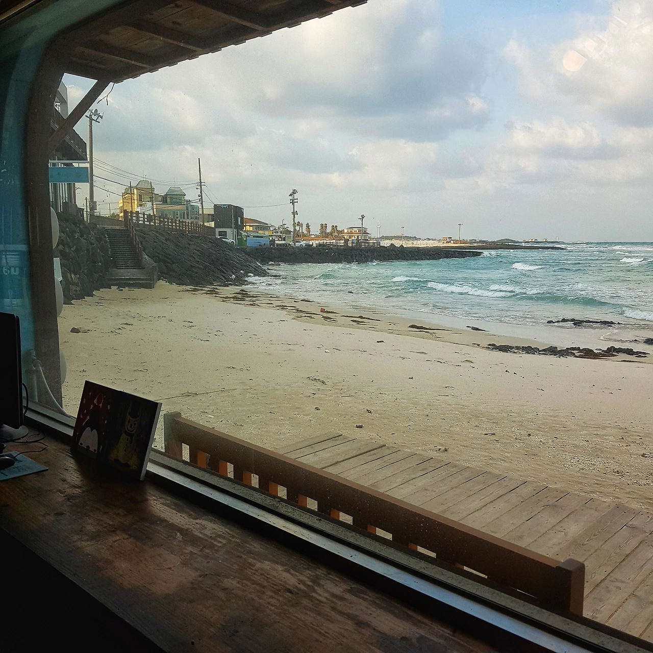 게스트하우스 식당은 한 겨울에도 20대 젊은 여행객들로 붐빈다. 친구들과 삼삼오오 여행을 하며 우정을 쌓는 모습이다. 원하는 만큼 식사를 하고 제 그릇은 직접 설겆이를 해놓아야한다니, 가위바위보로 설겆이 담당을 정하기로 재미삼아 제안하지만, 가위바위보의 법칙이라고 해야할까? 결국, 추운 겨울 아침 설겆이는 내 몫이 된다. 이런 상황엔 부자지간에도 양보란 없나보다. 아들녀석 뒤도 돌아보지 않고 자리를 뜬다. 게스트하우스는 나도 아들도 처음이긴 하지만, 들은대로 아들과의 여행에 재미를 더해주는 곳이다. 식당 창밖으로 협재해변의 파도가 여전이 세찬 바람을 말하지만, 태양빛 만큼은 한층 선명해진 아침이다.