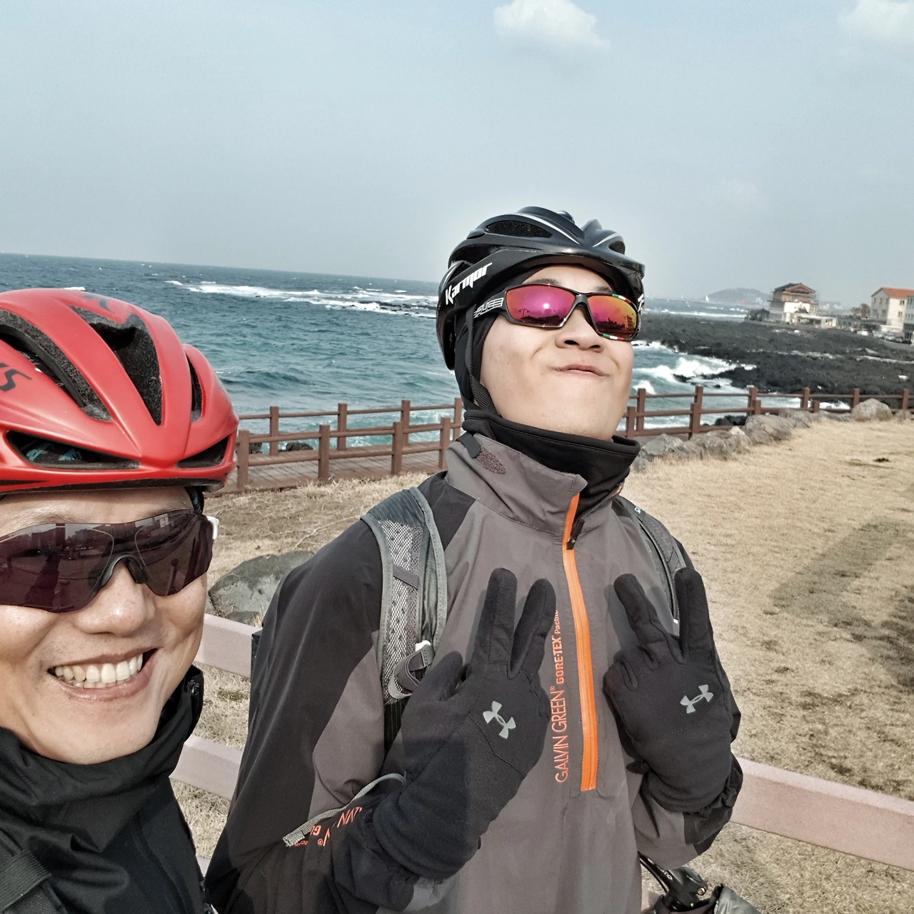 한겨울 제주의 북서풍은, 제주공항에서 출발해서 시계 반대방향으로 방향을 잡는 라이더들에게 큰 힘이 되어준다. 물론 성산에서 부터는 다시 북쪽으로 오를 수 밖에 없어, 후반부 라이딩을 곤혹스럽게 하기도 하지만, 도착 전 부터 날씨 걱정이 컸던 터라, 순풍에 화창한 날씨는 너무도 고마울 따름이다. 아들녀석은 자기가 운이 좋아서라고 능글맞은 웃음을 짓는다.