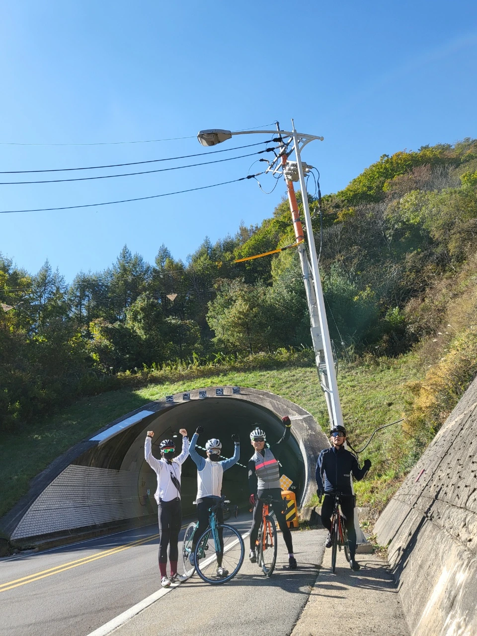 전반부 2km는 평균 경사 11.6%의 숫자만 봐도 양쪽 다리가 굳어질듯한 업힐인 데다, 거의 직선에 가까우리만치 뻗어있어 업힐 라이딩을 하면서 고개라도 들어 위를 쳐다볼라치면 눈부신 가을볕을 한 것 받은 회색빛 도로가 벽처럼 우뚝 앞을 가로막고 선 듯 라이더를 압도한다. 길게 뻗은 도로엔 10~20m 정도 잠시 숨 돌릴만 한 틈 조차 보이지 않으니 다시 얼굴을 땅에 박은채, '페달을 누르다 보면 언젠간 오르겠지.'를 주문처럼 외게 된다.