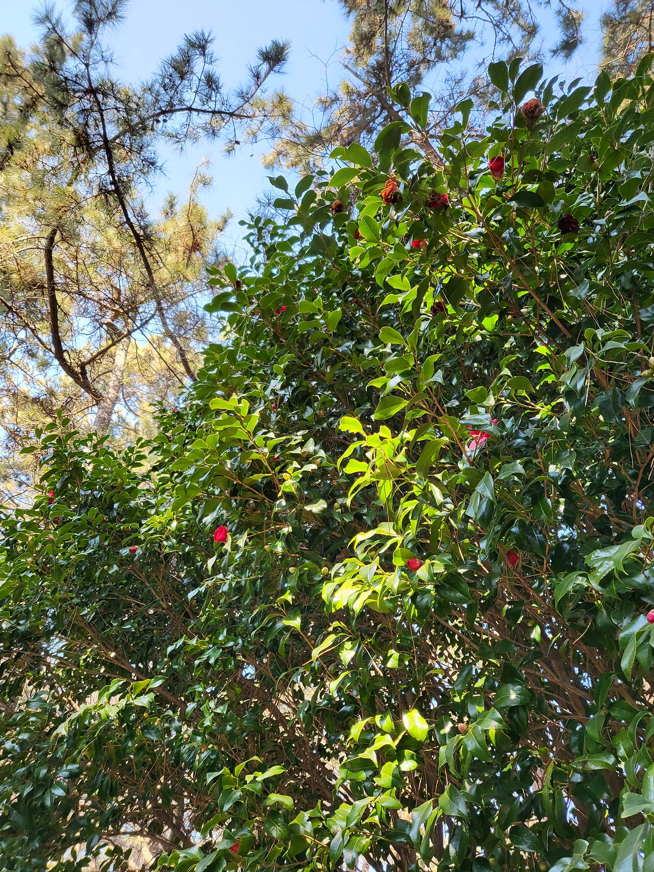 서둘러 소화를 시켜야 해서 다음 코스는 오동도 산책. "이게 등산이지 산책이냐"며 투덜대는 아내를 달래 보려 먼저 얼굴을 내민 부지런한 동백꽃이 있나 둘러본다. 제주의 동백은 '겨울의 시작'을 알리는 꽃이라는데, 육지에서의 동백은 '겨울의 끝'을 알린단다. 그래서인지 흔히 봄꽃 무리에 끼지 못하는 동백이지만, 오동도를 덮고 있는 동백나무에 이렇게 간간히 비치는 빠알간 동백꽃을 보니 이젠 봄이구나 싶다.