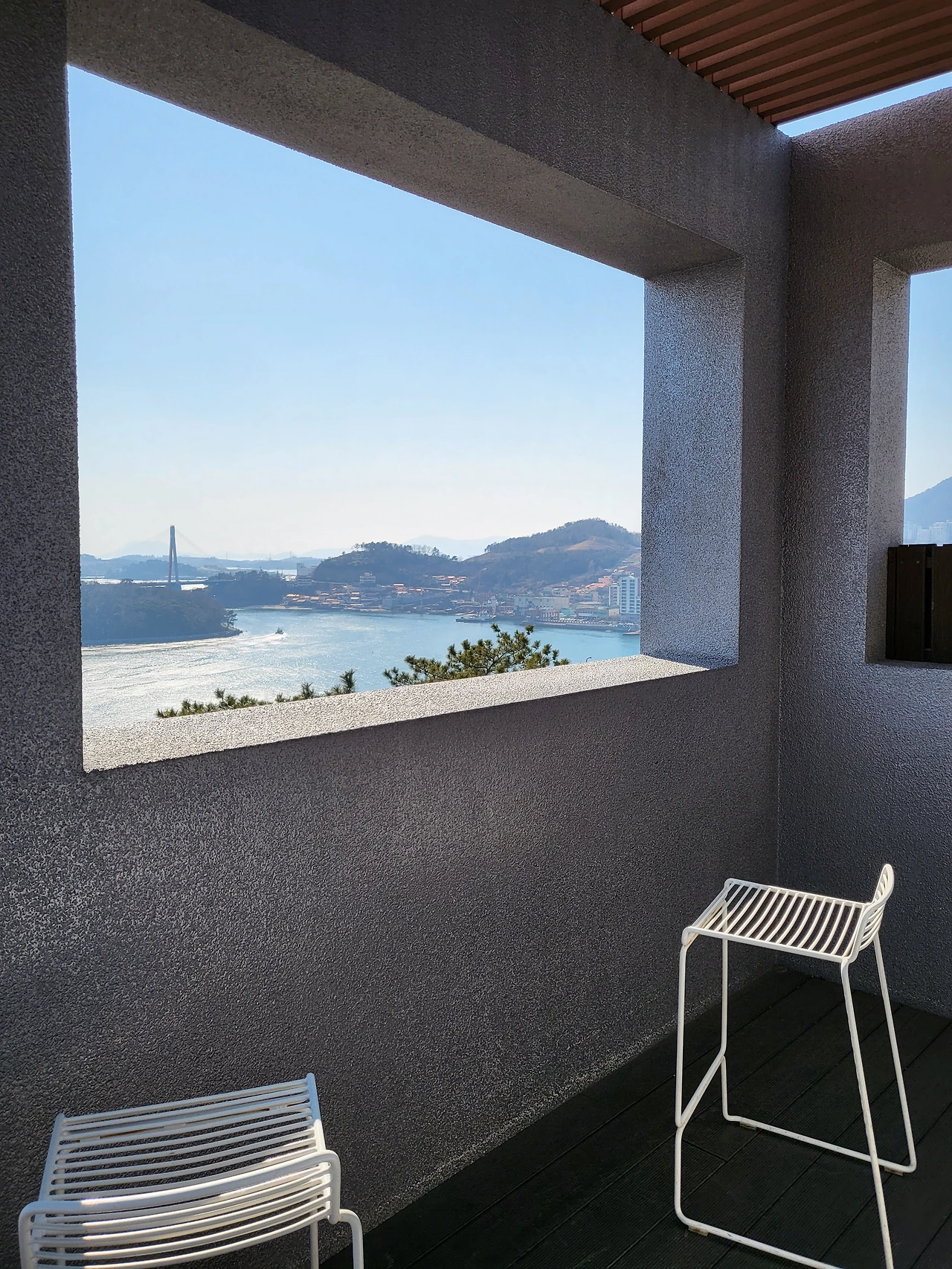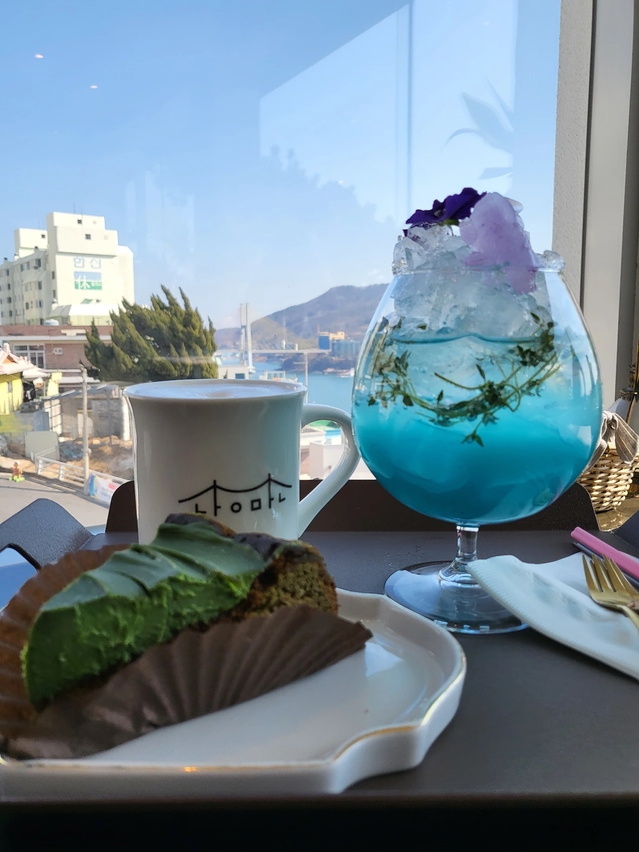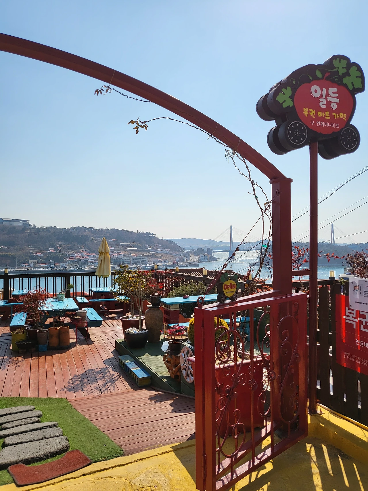 오후에 접어들면서 꽤 따뜻해졌다. 선블록을 미처 준비하지 못한 아내는 햇볕을 피해 다닐 정도로. 오동도에서 나오자마자 곧바로 택시로 이곳 고소동 벽화골목이 시작되는 곳으로 이동했다. 새벽부터 바쁜 두 다리도 잠시 쉬게 할 겸, 화창하기 그지없는 겨울 끝의 여수 앞바다를 전망 좋은 곳에서 커피 한 잔과 함께 담아가고 싶었다.