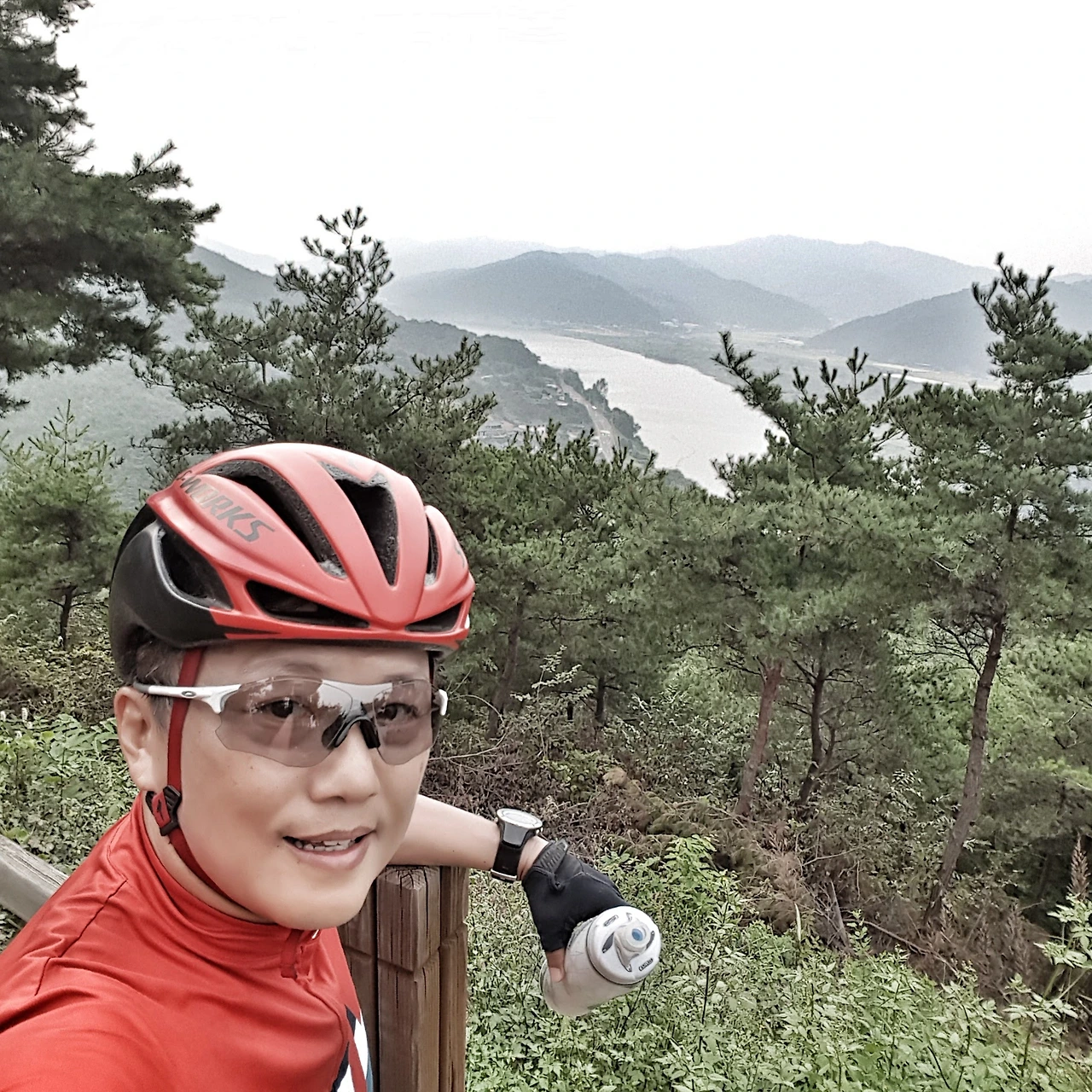 지도앱을 열어 확인하니, 1킬로미터가 조금 넘는다. '5.2킬로미터였던 이화령 비하면 괜찮을거야'라면 머리 속에서 화이팅을 외쳐보기도 하지만, 머리 속에서 뭐라고 하던, 두 다리는 이미 페달링을 시작했다. 한 코너를 돌고, 두번째 코너를 돌고, 한참을 올라왔는데도 "정상까지 600미터" 란다. 호흡이 흐트러질 정도로, '길다'라는 생각마저 든다. 또 한번의 코너를 돌고 보니, 달성보에서 스쳐 만났던 두 청년이 자전거를 눕힌 채 땀에 젖어 지친 호흡을 가다듬고 있는 모습이 보인다. 남들 생각할 처지는 아니어서 힘든 고개를 들 힘조차 아끼며 땅에 얼굴을 묻으려는 듯 힘찬 숨을 몰아 그들 앞을 지나 돌아 오를 때, 청년 중 한명이 "힘 내세요~!" 라며 큰 소리로 응원해 준다. 감사하고 또 고맙지만, 미소만으로 화답하기조차 힘겹다. 스타일은 구길 수 없어 찡긋 멋있게 눈인사를 던지듯 건낸다.