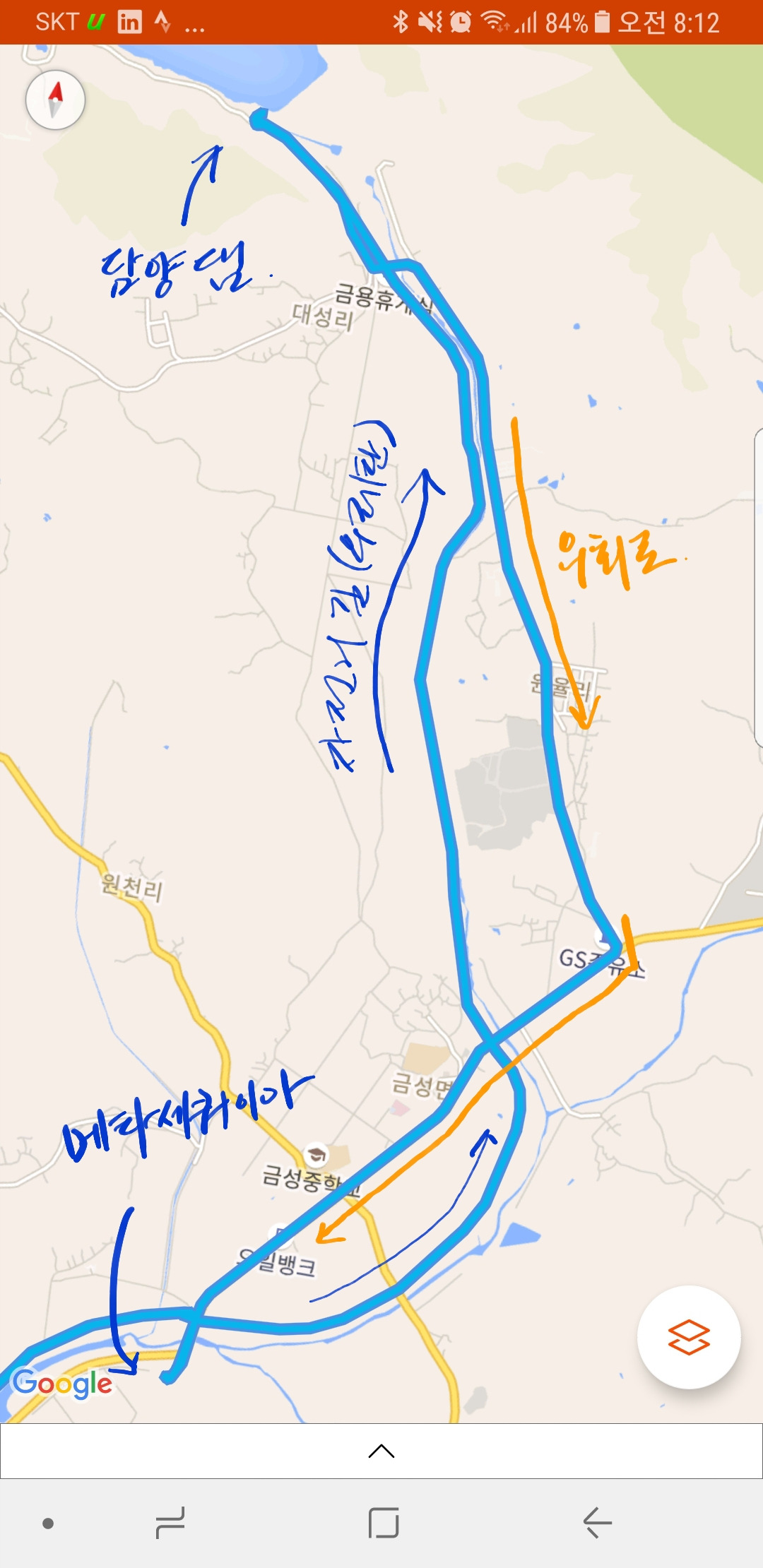 "금성산성로"와 "담순로"를 이용해 우회할 수 있다. 물론, 도로 라이딩이 익숙지 않은 라이더나 한번즈음 정식 자전거길을 이용해보는 것도 좋은 선택일 것이다.