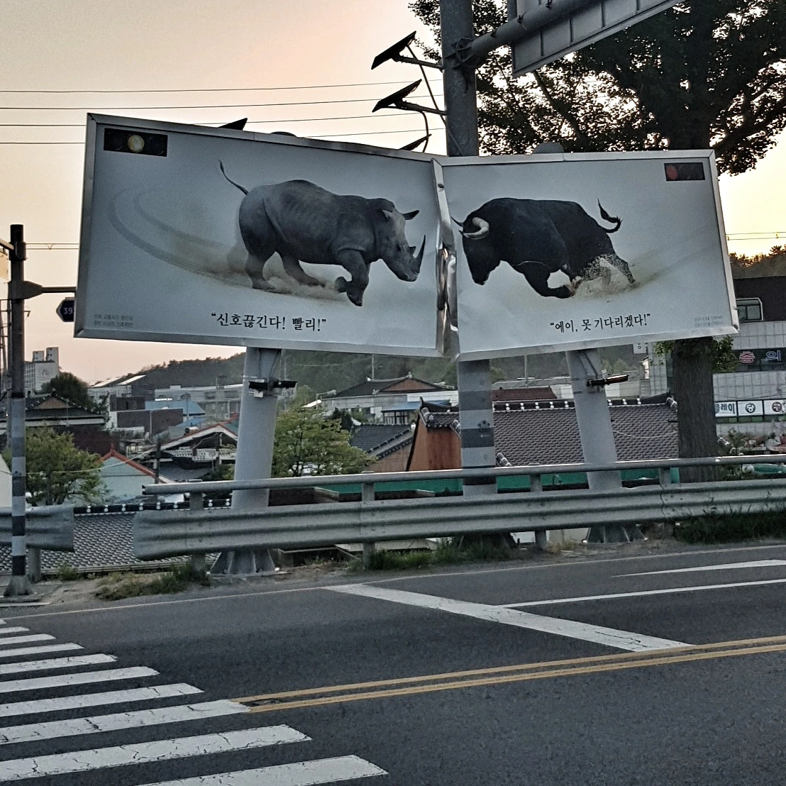 해질녘에 나주에 도착했다. 한때 광주의 기에 밀려 쇠퇴의 길을 걷다가 10여년 전부터 조성되어온 "혁신도시"의 불씨를 타고 도시로서의 자존심을 회복해 간다고 한다. "혁신"이라는 단어로 부터 풍겨오는 기대감에 부응이라도 하듯, 대형 옥외간판에 예술적 창의성으로 해체하듯 필요한 메세지를 담은 대담함이 눈에 들어온다.