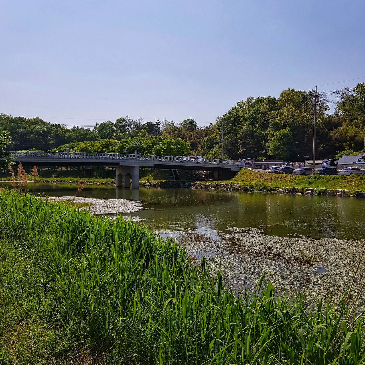 담양에서 유명하다는 돼지갈비 석쇠구이로 늦은 점심을 마치고 식당이 위치한 그 길을 따라 영산강을 만나러 자전거에 오른다. 곧 화강암으로 깔끔하게 지어진 다리가 보이고 그 입구에 자전거를 안내하는 익숙한 자전거길 표지판이 나타난다.