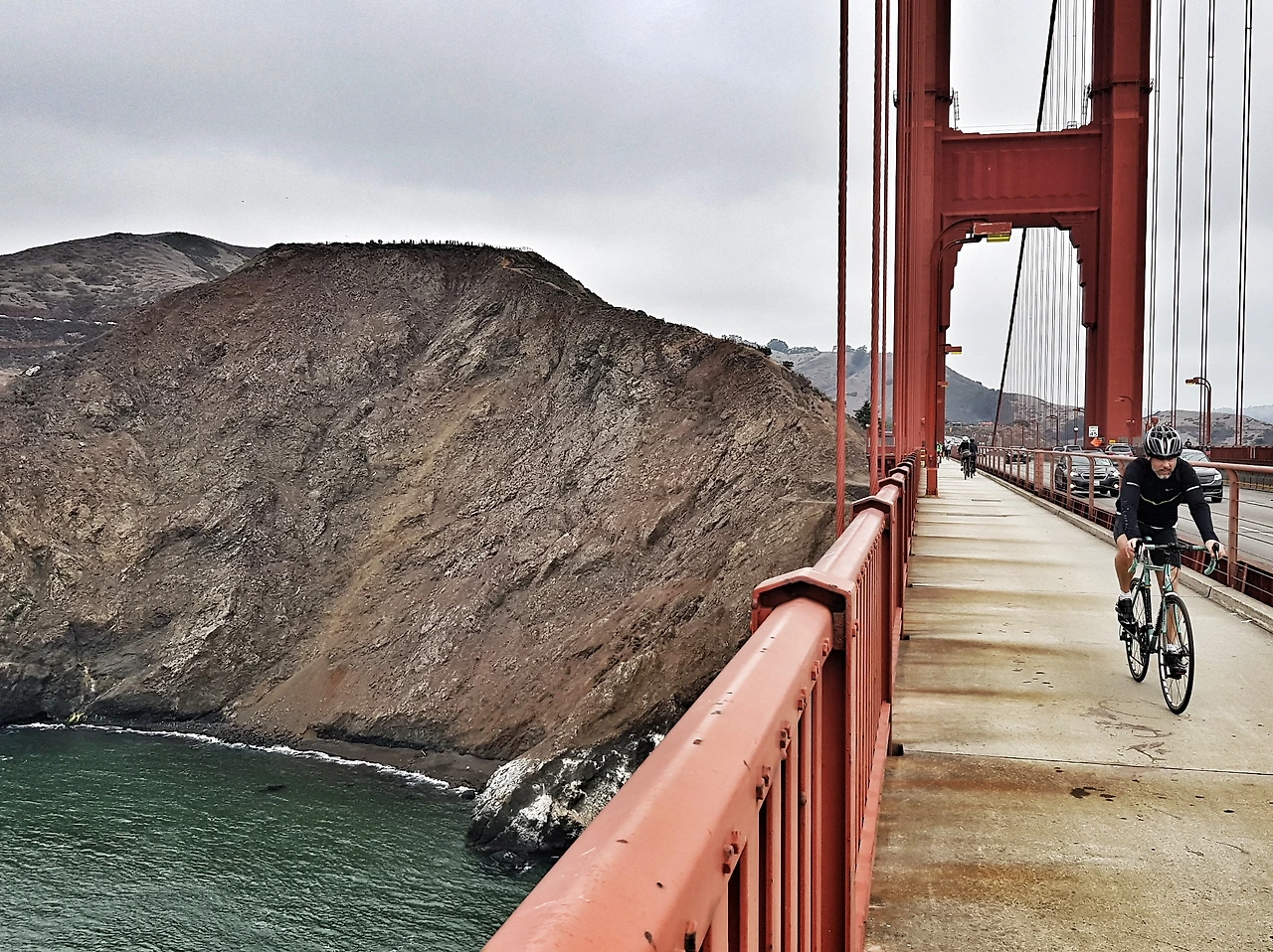 골든게이트브리지를 건너 맞은편 광장에 도착하자, 또다른 세계가 열리며 내 페달링 본능을 유혹한다. 앞쪽으로 놓인 도로는 골든게이트국립휴양지의 업힐 라이딩을, 다리 아래로는 소살리토로 이어지는 해변도로가 내 자전거를 끌어당긴다. 하마터면, 내일 일정이고뭐고 내팽개쳐 버리고 캘리포니아에서 일탈의 미학을 추구할 뻔했다. 그도 나쁘진 않겠지만, 미국산 토종 자전거를 잘 달래서 뒤돌아선다.
