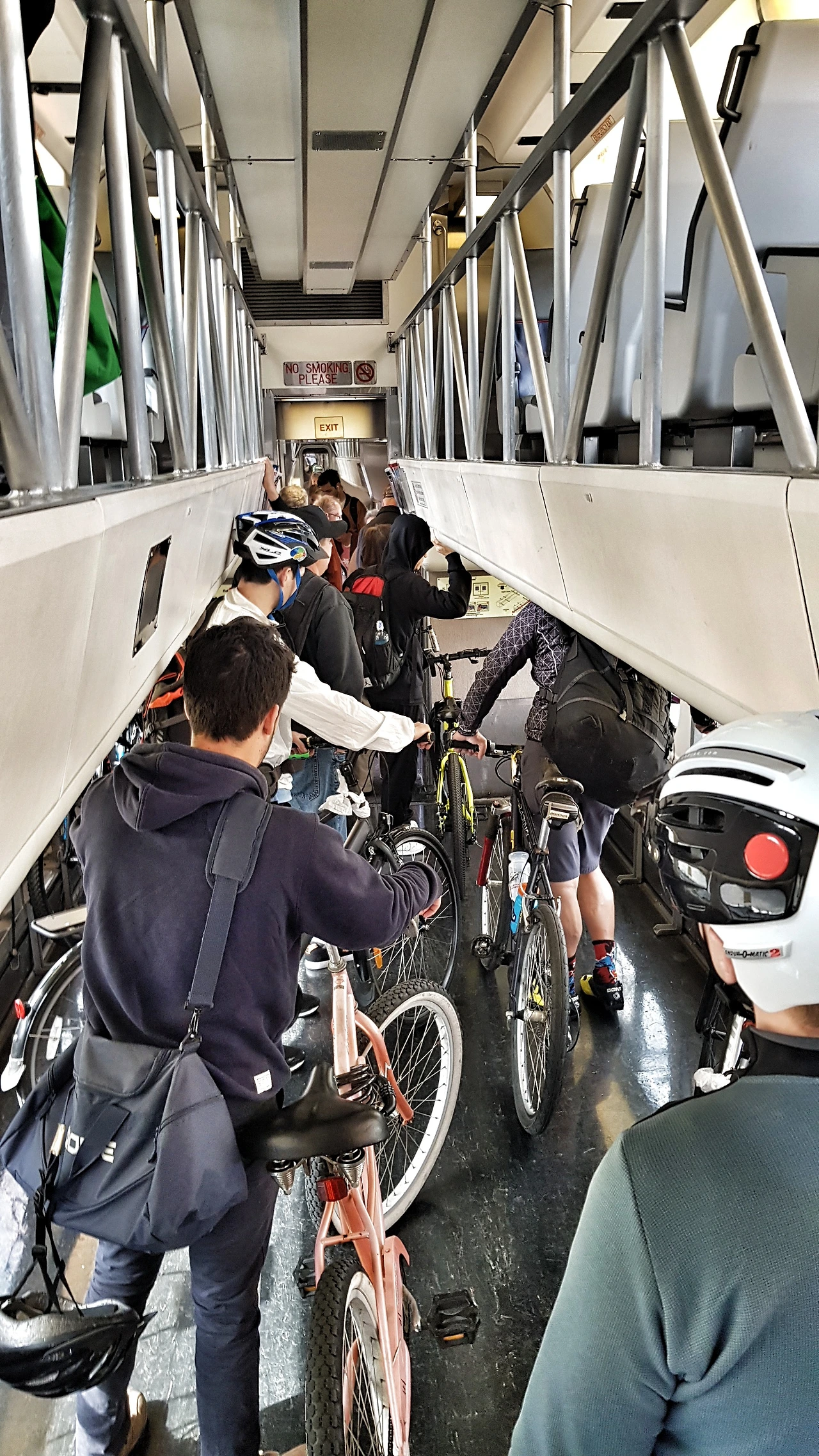 기차가 들어오고, 서로에게 인사를 건넨 뒤, 표시된 자전거 차량에 올랐다. 오르는 순간 감탄이 절로 나온다. 한국의 서울-경기 기차도 주말에는 양 끝쪽 차량에 자전거를 실을 수 있고 약간의 시설도 마련되어 있지만, 군더더기 하나 없는 실용적 구조와 디자인으로 자전거 이동의 편의를 극대화 한 차량 구조였다. 이곳을 오가는 많은 자전거 커뮤터들에게 주중에도 더할 나위 없이 편리한 교통수단임을 금방 알 수 있었다. 꾀 시간이 걸리는 것 빼고는 괜찮은 여행이다.