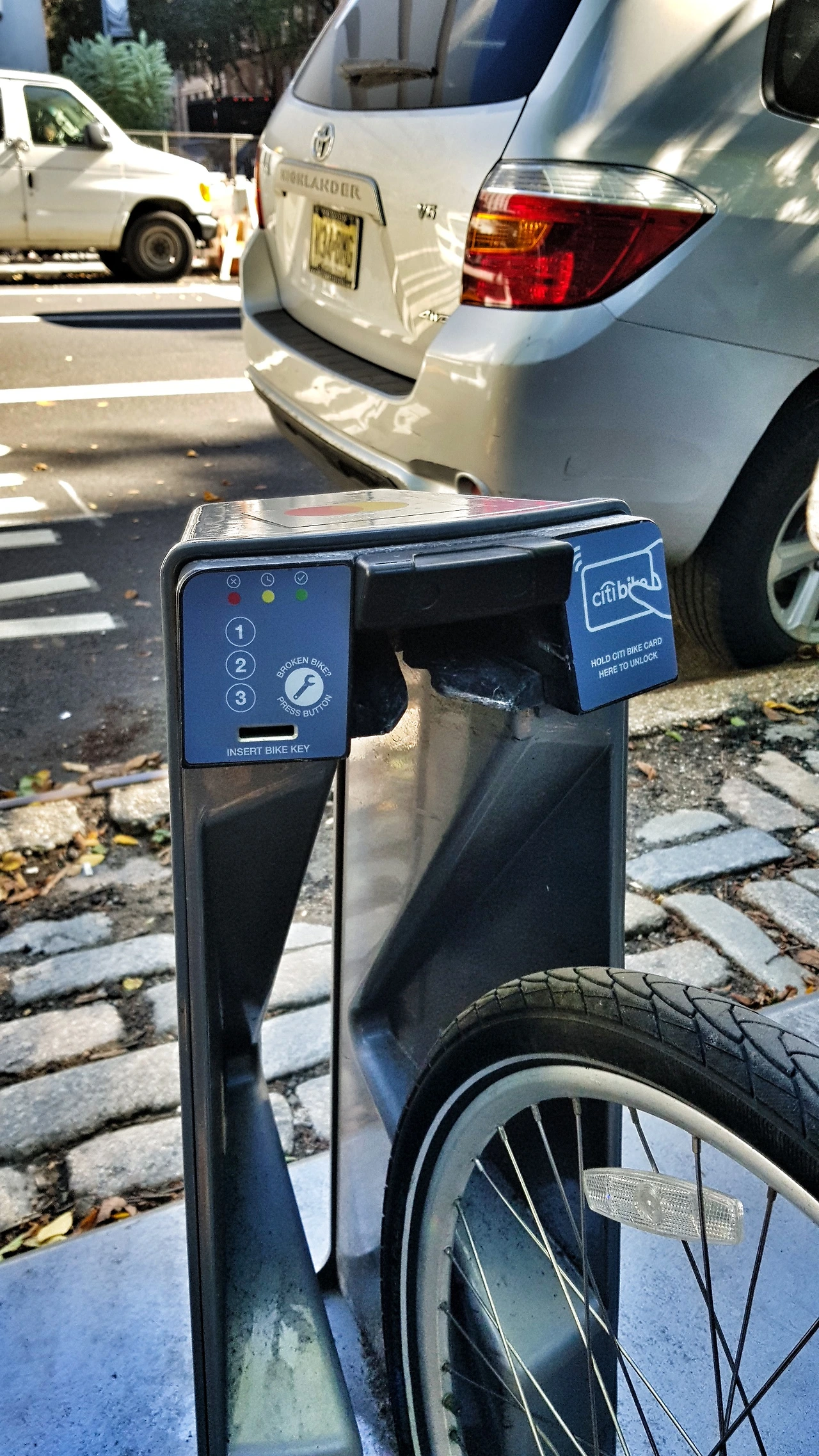 뉴욕시내 곳곳에 마련된 바이크 스테이션(Bike Station)의 키오스크(Kiosk)를 이용해 신용카드로 사용료를 지불하고 자전거를 선택해서 도크(Dock: 각 자전거가 잠긴채로 주차된 시설)에서 분리해 내면 되는데, 뮤지엄 카페에서 커피와 함께 느긋한 점심을 먹으며 미리 가까운 스테이션을 확인하고 계획도 세울겸 앱을 다운받아 설치했다. 앱이 있으면 스테이션 키오스크를 사용할 필요는 없다.
