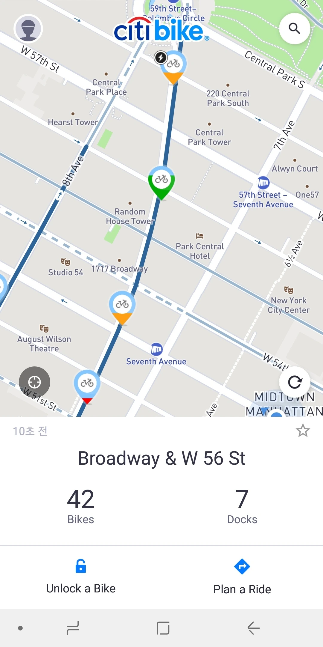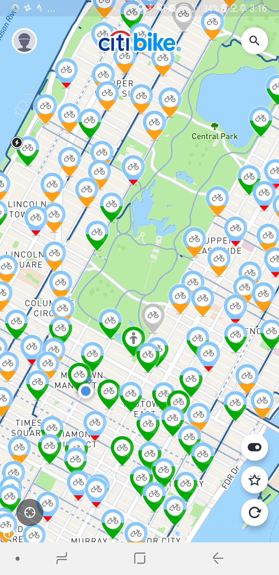 센트럴파크와 짧은 시내구간만 라이딩할 계획이어서 30분 짜리 Pass를 구매($3)하고, 앱 지도에 표시된 가까운 스테이션으로 향한다.