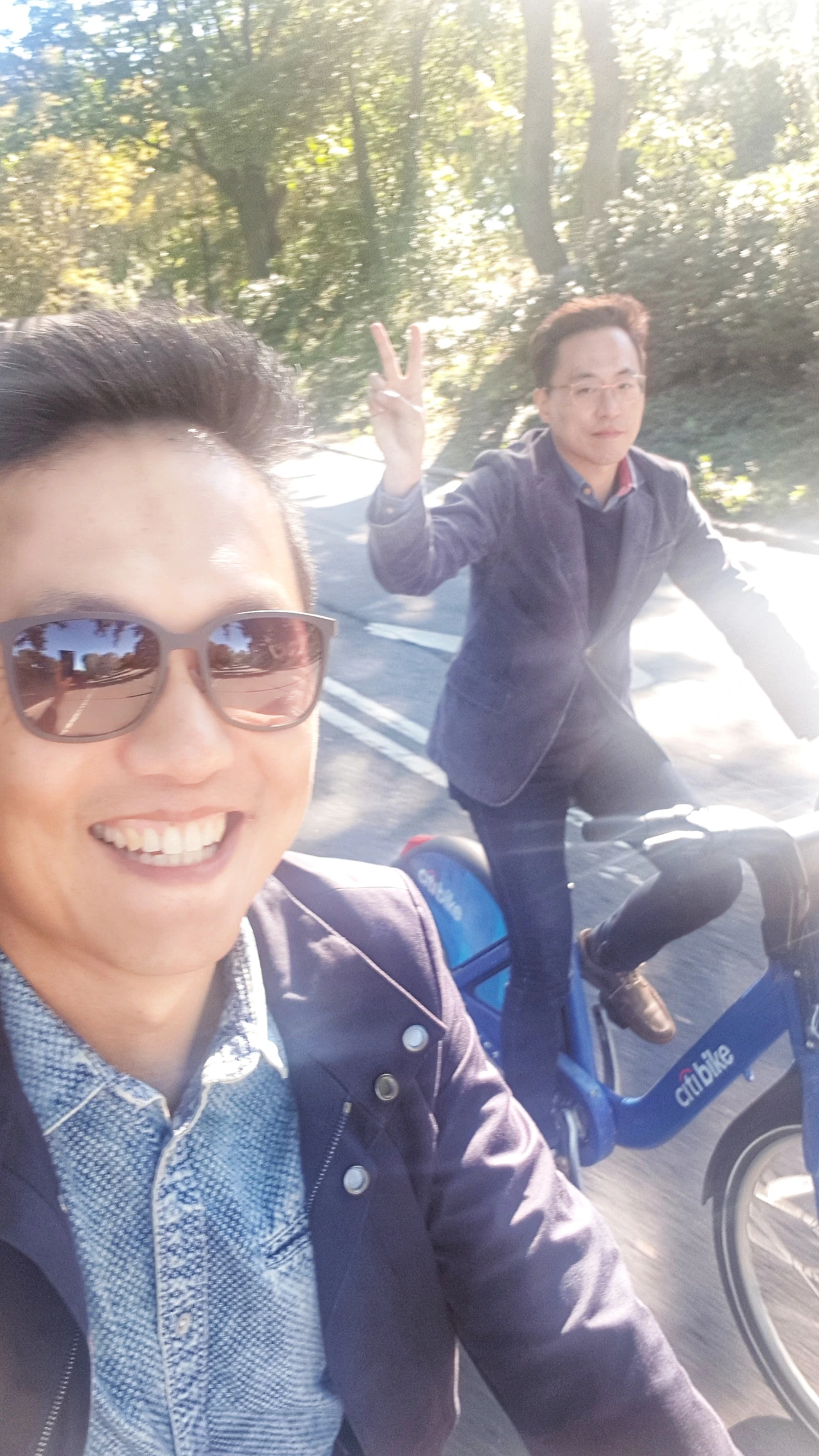 그간 출장을 올 때 마다 센트럴파크는 아침 조깅으로만 조금씩 돌아보곤 했는데, 자전거로 전체를 한번에 두루 조망해 볼 수 있어 특별했고, 런던의 Hyde Park에서 영감을 받은 도심공원 계획으로 조성된 공원이라고 하는데, 분주하고 빠듯한 뉴욕 삶의 한가운데 위치한 '허파'와도 같은 역할을 하는 곳일텐데, 조금은 쌀쌀한 센트럴파크의 숲과 호수가 묻어나는 공기의 맛이 긴장을 풀어놓는다.