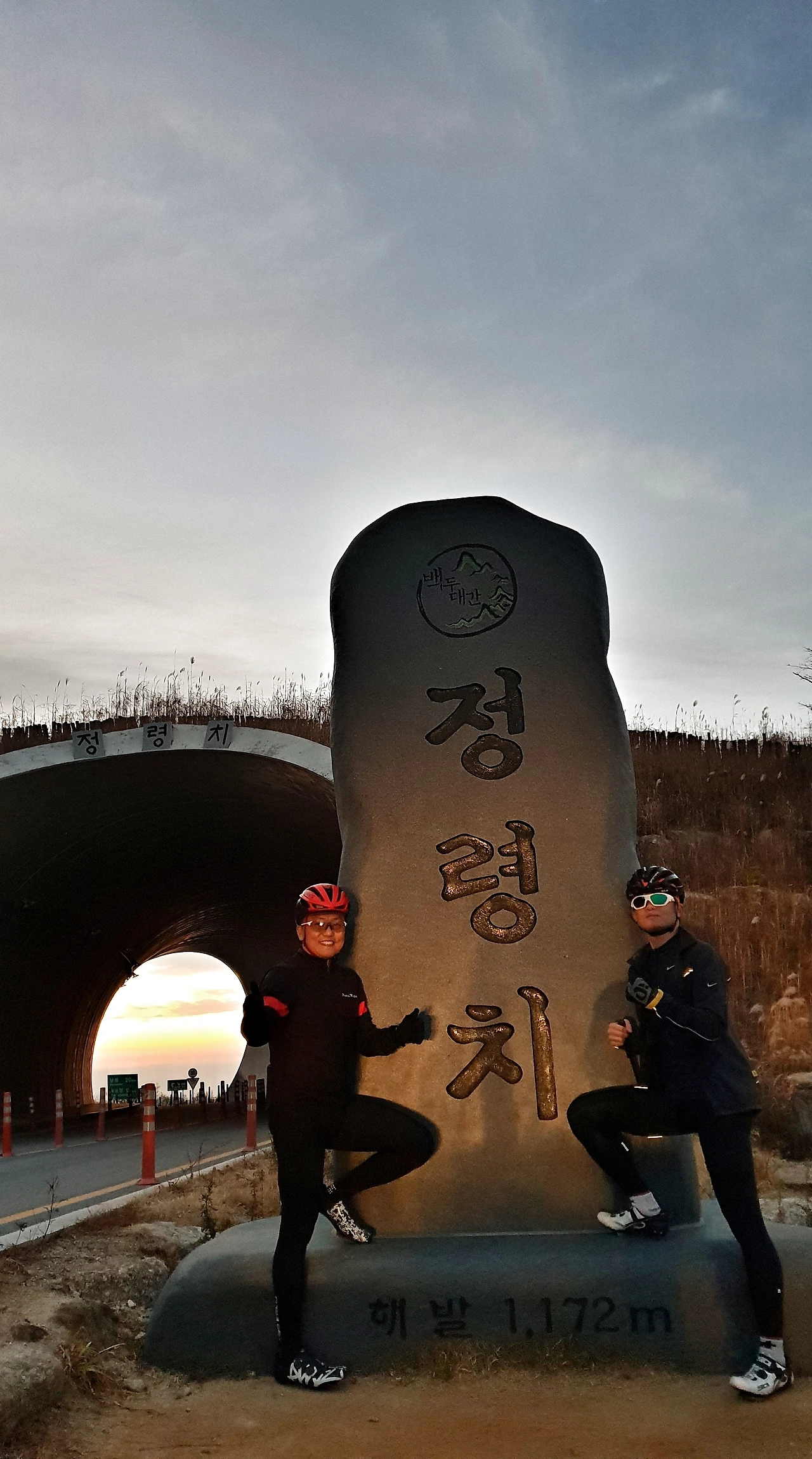 정령치의 고갯길이 눈 앞에 보이니, 처린은 석양을 등지고 서서 엉금엉금 기다시피 라이딩을 이어가는 나를 촬영해 주느라 여념이 없다. 고맙고 미안했다. 정령치 표지석 뒤로는, 한낮의 지리산 보다 한층 붉은 석양이 지리산의 서쪽 하늘을 태우고 있었는데, 이렇듯 백두대간 자전거여행은 그 마다의 특별한 시간에 저마다 지닌 귀중한 찰라의 모습을 선사한다. 이 맛과 그 멋에 자전거여행을 그만두기 어려운가 보다.