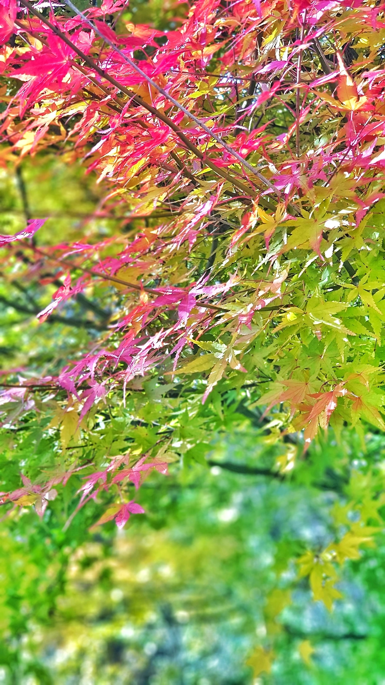 방금 팔레트에 담구어졌던 붓을 여기저기에 세워놓고 잠시 쉬기라도 하듯, 노랗고 주홍 빛깔의 잎들 끝자락들만 발갛게 물들어 있다. 수채화를 그리던 중인양.