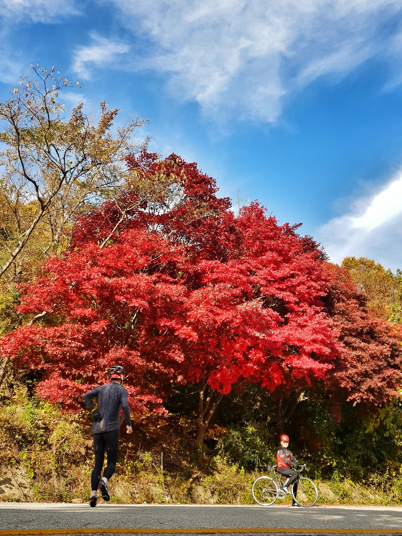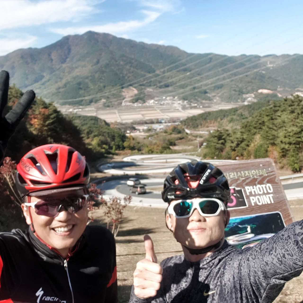 2년 전 라이딩 시작 후, 처음으로 '끌바'(자전거에서 내려 끌고가는 바이크)를 생각했을 정도다. 몸이 아직 완전히 풀리지 않고, 점심도 아직 무거운 탓도 있겠지만, 낮은 지안재를 빼면, 오늘 지리산의 세개 고개길 중, 이제 그 첫 번째를 넘고 있는 것 뿐인데, 오늘 라이딩이 꾀 특별할 것 같은 불길함이 일었다. 고갯길에 차량이 없을 땐, 길의 폭을 전부 활용해 지그재그로 바퀴를 굴리며, 조금이라도 경사각도를 줄여보지만, 긴 거리이다 보니, 그것마저도 큰 효과를 보지는 못한다.