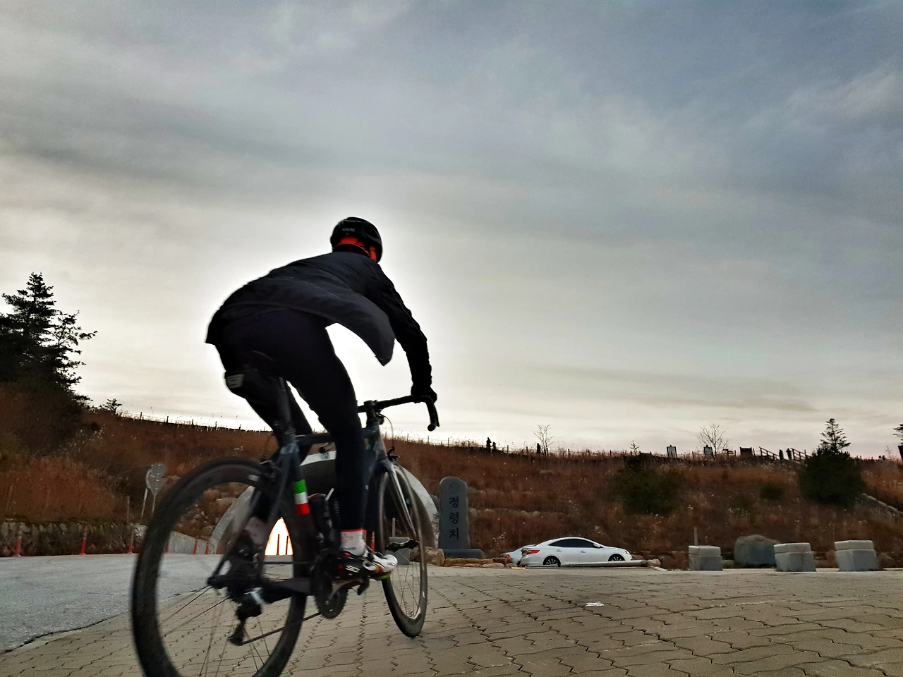 저 멀리 정령치 너머로 해는 기울었고, 맞은편으로 느릿느릿 내려오는 차들은 전조등을 밝혔다. 지프의 운전자는 일부러 창을 내려, 내게 "화이팅"을 외쳐준다. 늘 이런분을 만나면 고맙고 반갑다. 물론, 나 같은 무모한 라이더들이 신기하기도 했을 것이다.