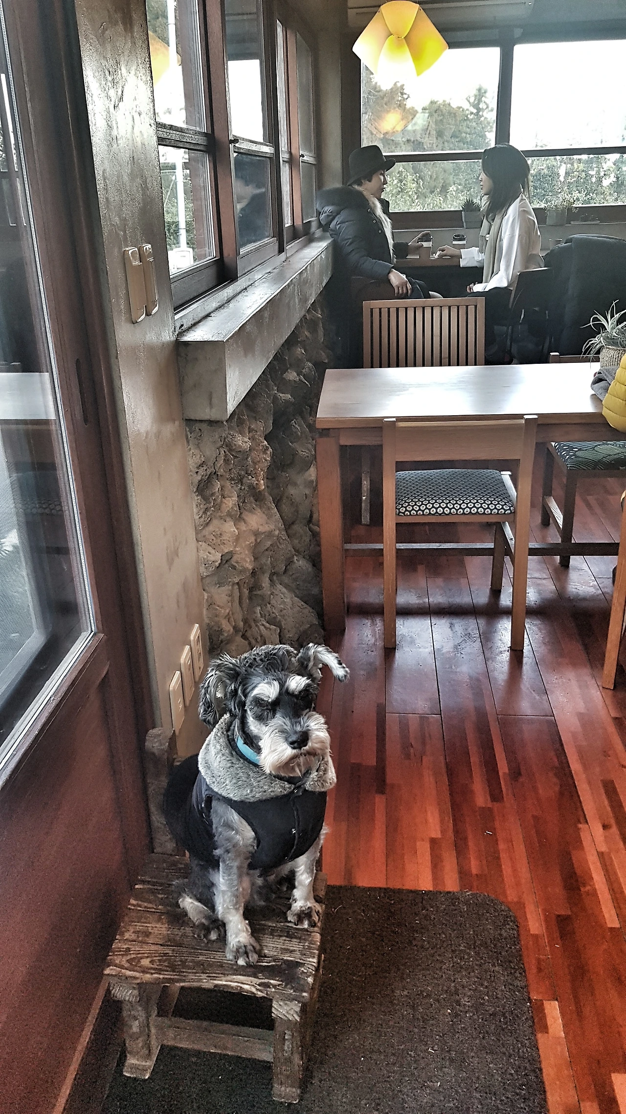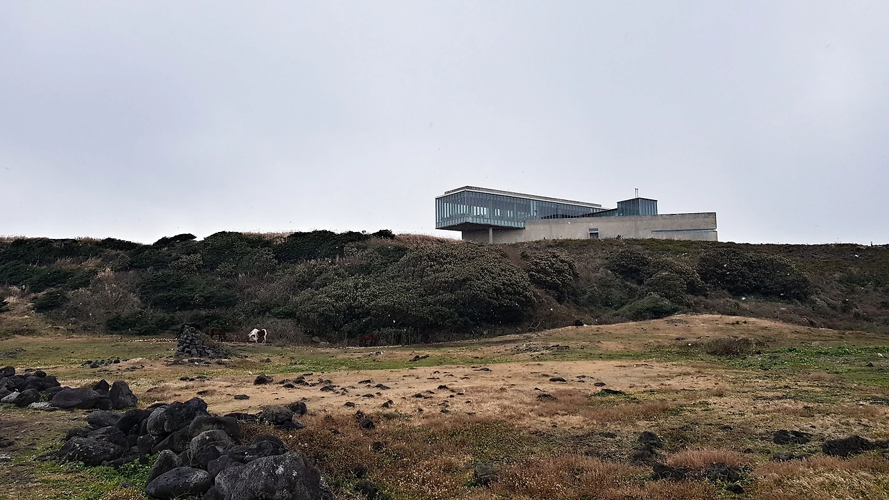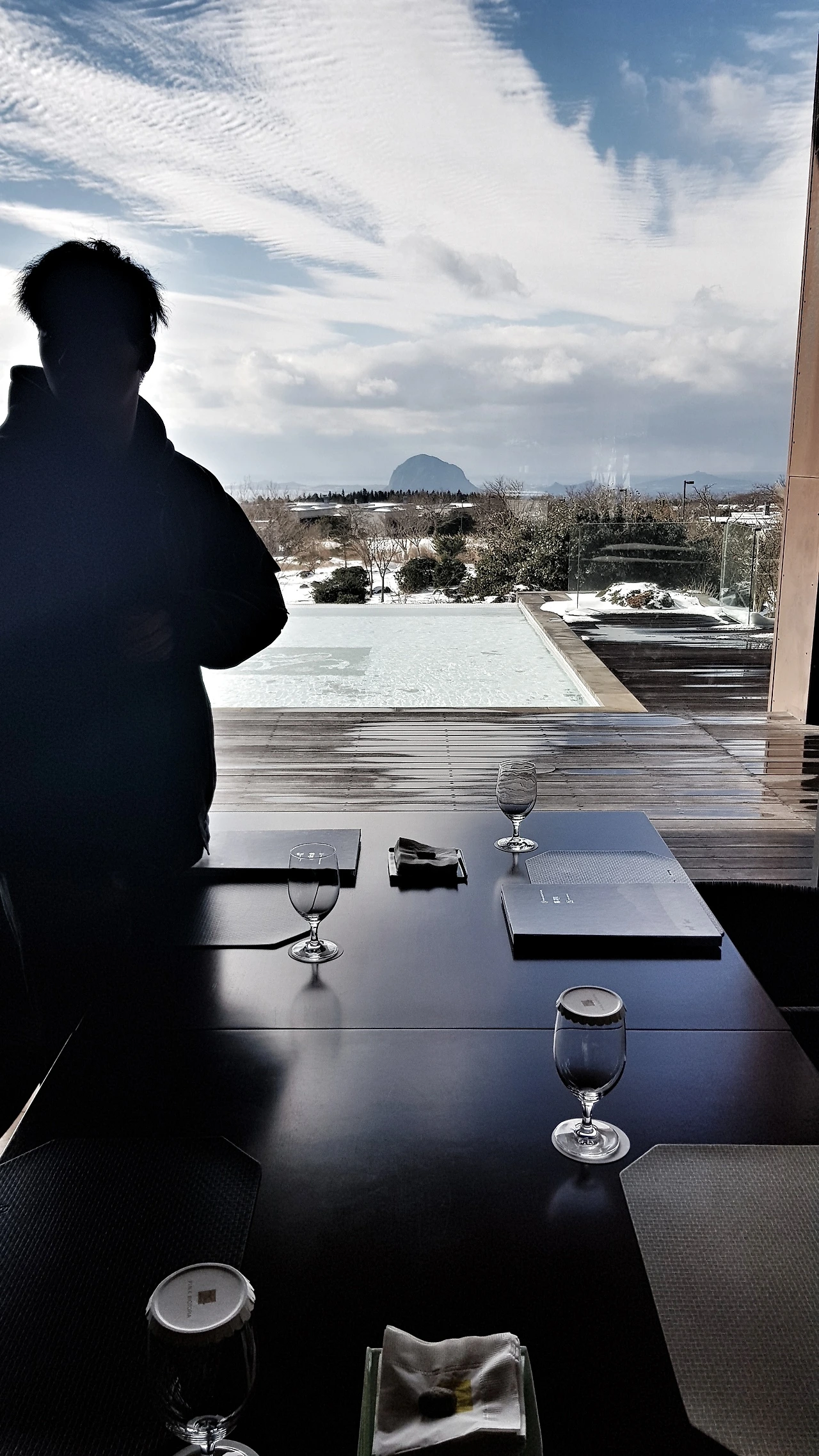 글라스하우스 2층에 위치한 - 1층은 지포(ZIPPO) 박물관이다 - 레스토랑에 앉은 우리는 각자가 좋아하는 차를 한 잔씩 주문하고 마주 앉는다. 겨울 섭지코지의 찬바람에 언 몸도 녹일 겸, 최근에 사귀기 시작한 아들의 여자친구 이야기, 진학하고 싶은 대학이야기, 그리고 아빠의 어릴적 이야기로 시간 가는 줄 모른다. 시원하게 시야가 열린 레스토랑의 글라스월(Glasswall) 너머로 성산 일출봉과 회색빛 제주 겨울바다가 눈보라와 함께 춤추고 있다.