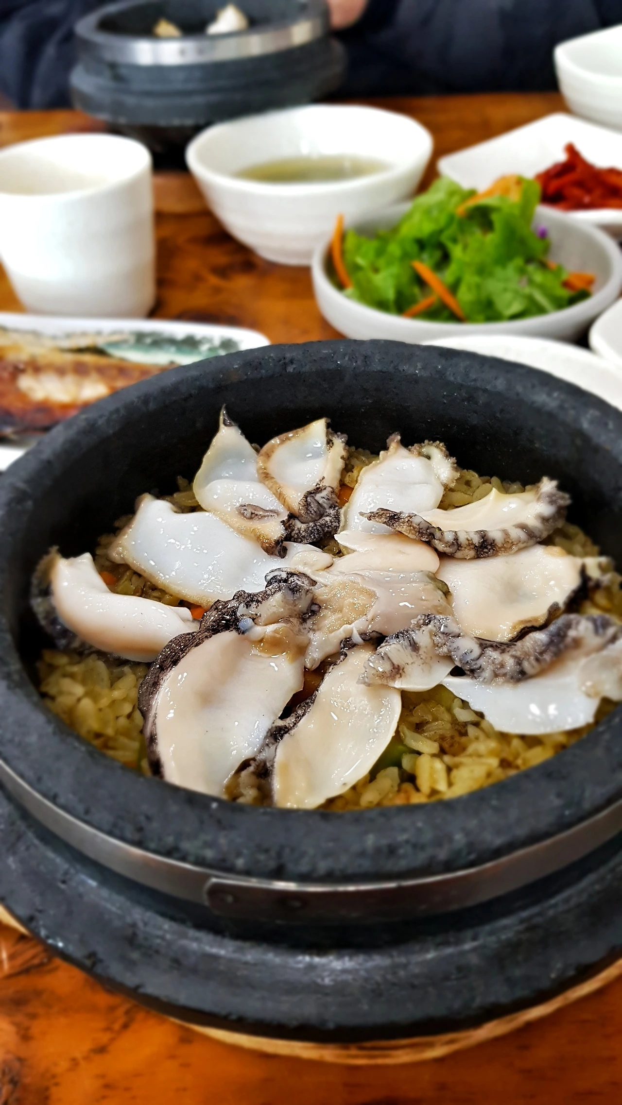 자전거로 여행 하다보면 가보고 싶지만 들러보지 못하는 곳들이 많은데, 구좌읍의 전복요리로 유명한 "명진전복" 식당은 길게 늘어선 대기손님 때문에, 성산읍 "섭지코지"는 자전거길에서 벋어나 한참 더 들어가야해서 항상 지나치기만 했던 곳이다. 일찌감치 찾아온 허기를 달래러 그 전복요리로 유명한 식당부터 들렀다. 지글지글 석판위에 구워지고 있는 전복과 맛갈나게 전복 내장에 비벼진 돌솥비빔밥으로 겨울여행은 시작부터 구수해진다. 안타깝게도, 우리 아들은 맛있게 잘 먹었지만 전복에 대해 아빠만큼의 큰 감흥은 없는 듯. 하기야, 해산물보다는 육류에 더 반응하는 나이이긴 하다.