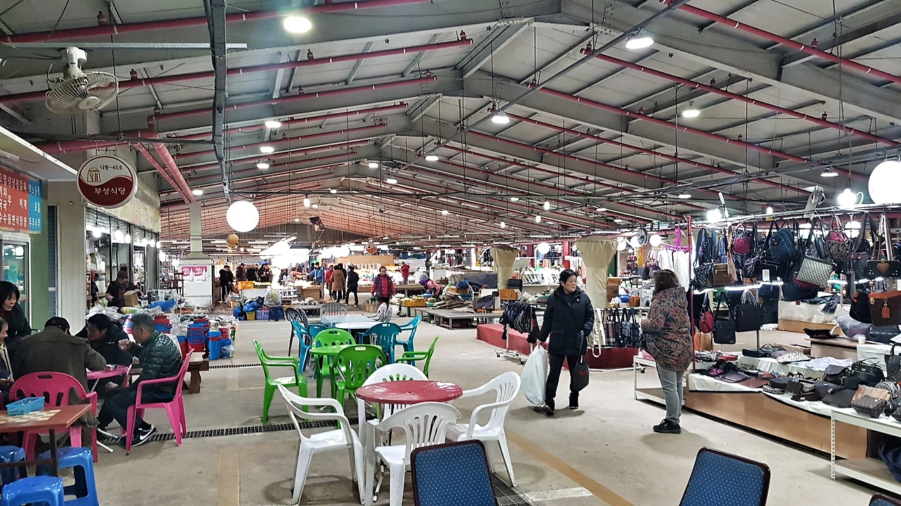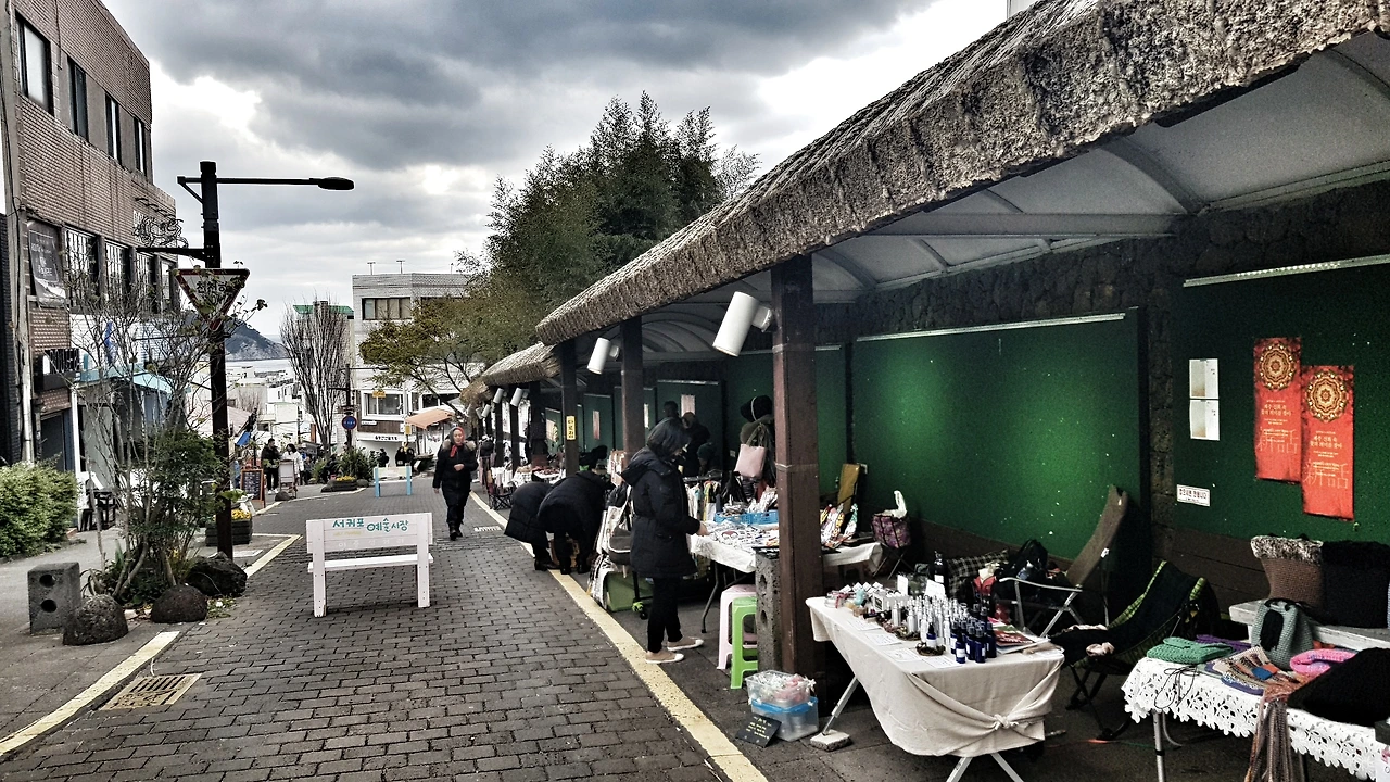 어느 지역이던, 여행을 통해서 그 곳의 시장을 둘러보는 것은 재미지다. 제주의 5일장은 매월 4와 9로 끝나는 날 열리는데, 우리 여행일정 중에 한림5일장에 들러볼 수 있는 행운을 얻었다. 조그만 시골시장에 늘 보아오던 값싼 물건들일 뿐이지만, 처음 보는 신기한 물건들인냥 바닥 한가득 늘어놓은 물건들에서 눈을 떼지 못한다. 시장 안 깊숙한 곳으로 우리를 이끄는 맛있는 냄새를 따라가다 붐비는 식당 한 곳을 찾아 제주식 순대국밥 한 그릇씩 나눠 먹는다. 식당 안 빈자리가 없어, 찬 시장바닥에 놓인 실외 테이블이지만, 따끈한 순대국물이 속을 데워준다. 맛있는 순대국이다.