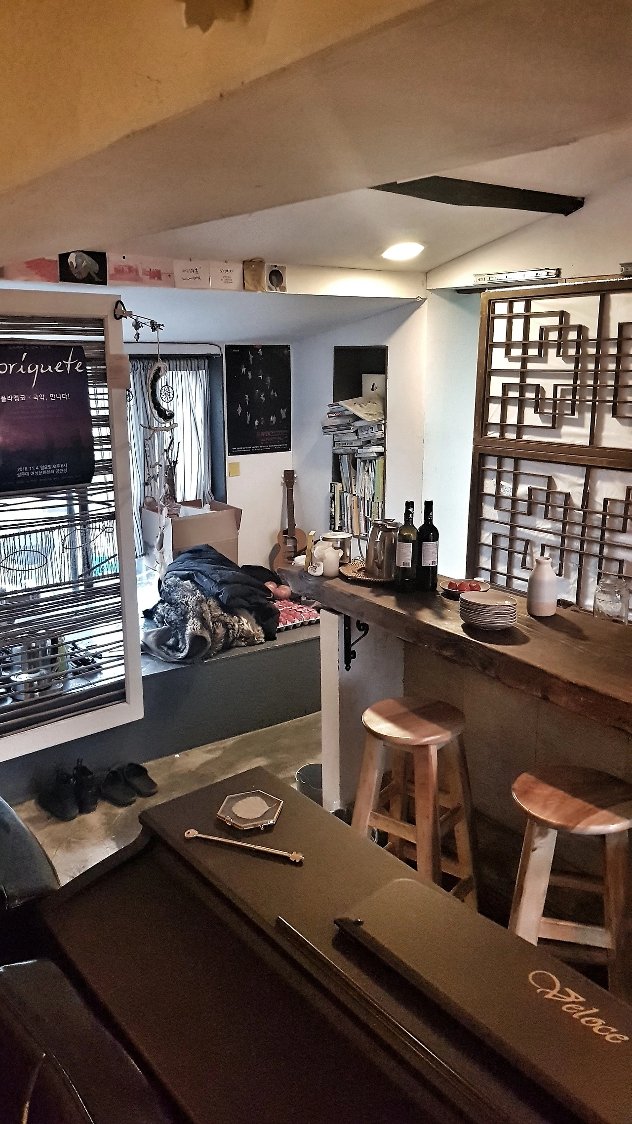 오후 5시 즈음 도착한 "행행행" 하우스콘서트 장소는 제주 옛 가옥의 소박한 모습 그대로, 실내 한 쪽 구석만 음악 공연에 맞게 리노베이션된 곳이었다. 공연이 없을 땐 거실로 쓰일만한 공간이다. 처음에 도착 했을 땐, 여느 제주 시골 마을의 골목과 집들과 어우러져 잘못 온 것은 아닌지 염려가 되었을 정도로 소박하다. 어두워지며 조명이 하나 둘 밝혀지니, 그제서야 그곳이 그냥 주거용 집과는 다른 '조금은 특별한' 장소임을 눈치챌 수 있다.