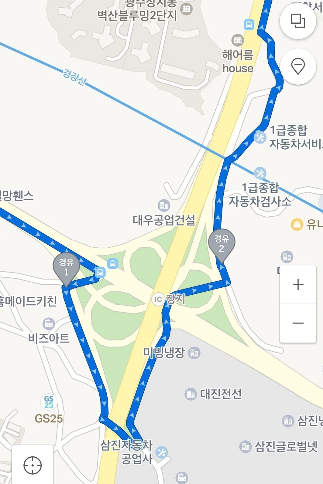 장지 IC에서 길을 잃고 헤매다, 토끼굴들을 이용해 사잇길로 통과하여 다시 회안대로(45)로 합류