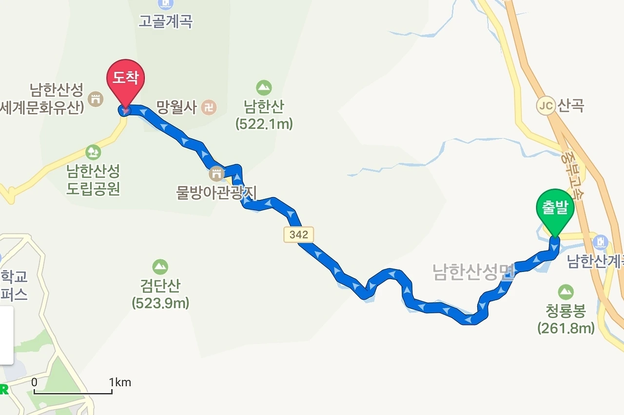 광주시 방면에서 시작되는 남한산성 업힐 코스. (총거리 7km, 평균경사도 3%) 이곳까지 도달하려면, 45번 국도를 타거나, 회안도로를 이용한다. 난이도 중상급