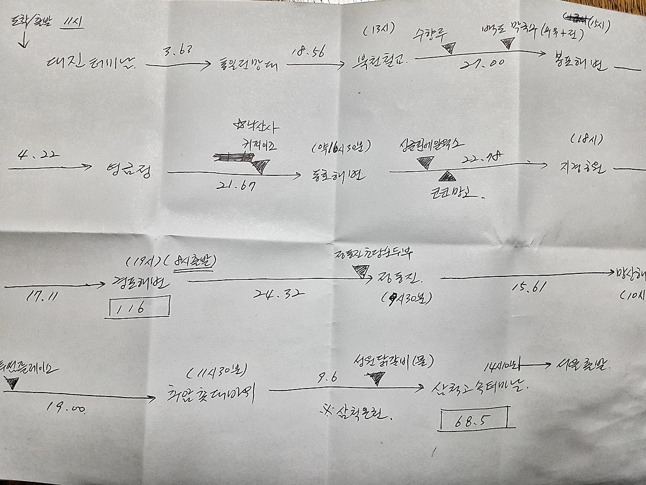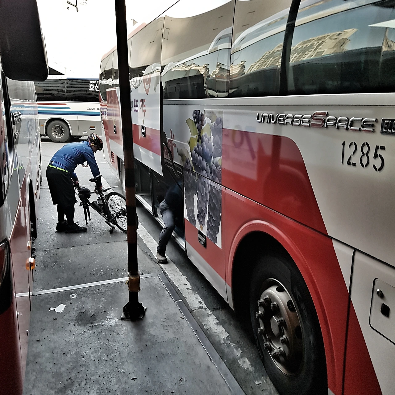 미리 예약해둔 숙소 사장님께 부탁해서 믿을 만한 대리기사를 섭외한 후, 만일의 경우를 위해 운전자 보험(저렴하다)도 들었다. 준비된 한 대의 차량 덕분에, 시외버스에 싣지 않고서도 8대의 자전거를 모두 동해로 옮길 수 있었다.