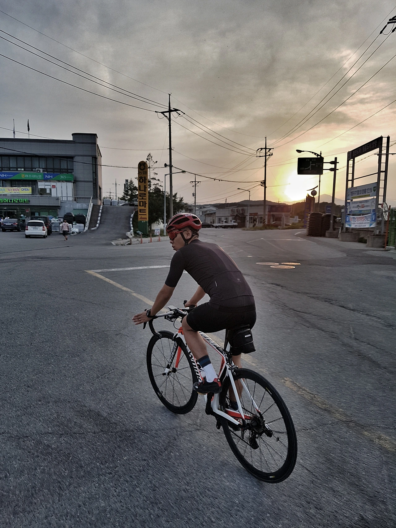 동해변길에서 태백산맥을 바라보며 저물어가는 태양이 만들어내는 석양 빛 또한 예상하지 못한 아름다움이다. 이런 씬(장면)들이야말로, 강원도 동해안자전거길이 가진 색깔이자 맛이다. 이런 멋진 장면들을 만날 때면 잠시라도 멈추고 싶어지는데, 만약 그랬다면, 자정까지도 숙소에 도착하지 못했을 것이다. ^^