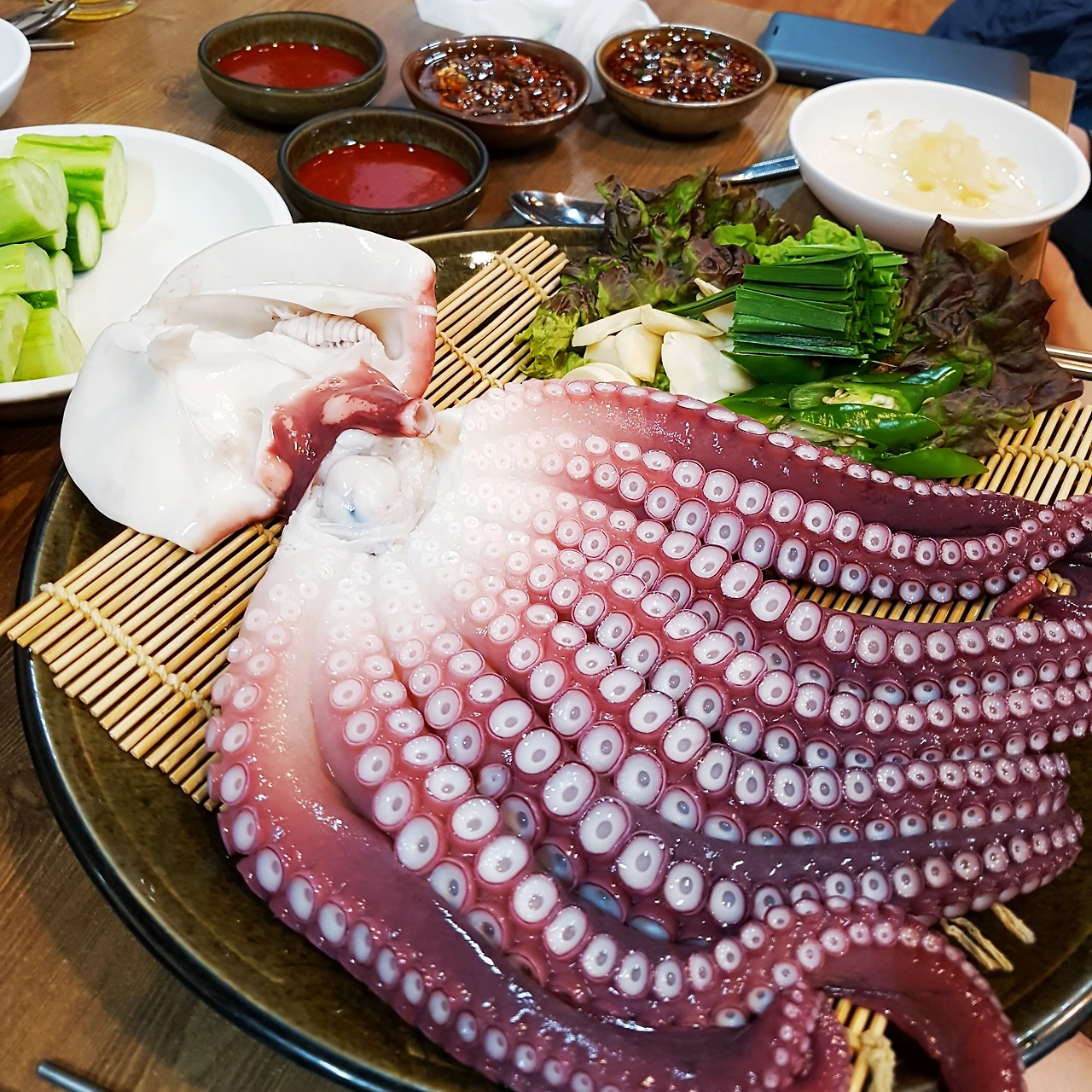두번째 펑크사고 수습 후, 아무런 일도 없었던 듯이, 아까 그 터미날 지킴이 할머니(^^)께서 알려 주신 그 횟집에 도착. 물회 8 그릇을 주문하니, "얼마나 시간이 있으시냐"고 한다. 생선회를 지금 떠야해서 그렇단다. 얼마나 싱싱할까~ ^^ 이미 입안엔 군침이 가득하다. 기왕에 늦어진 여행, "맛"을 포기할 순 없지~. ㅎㅎ