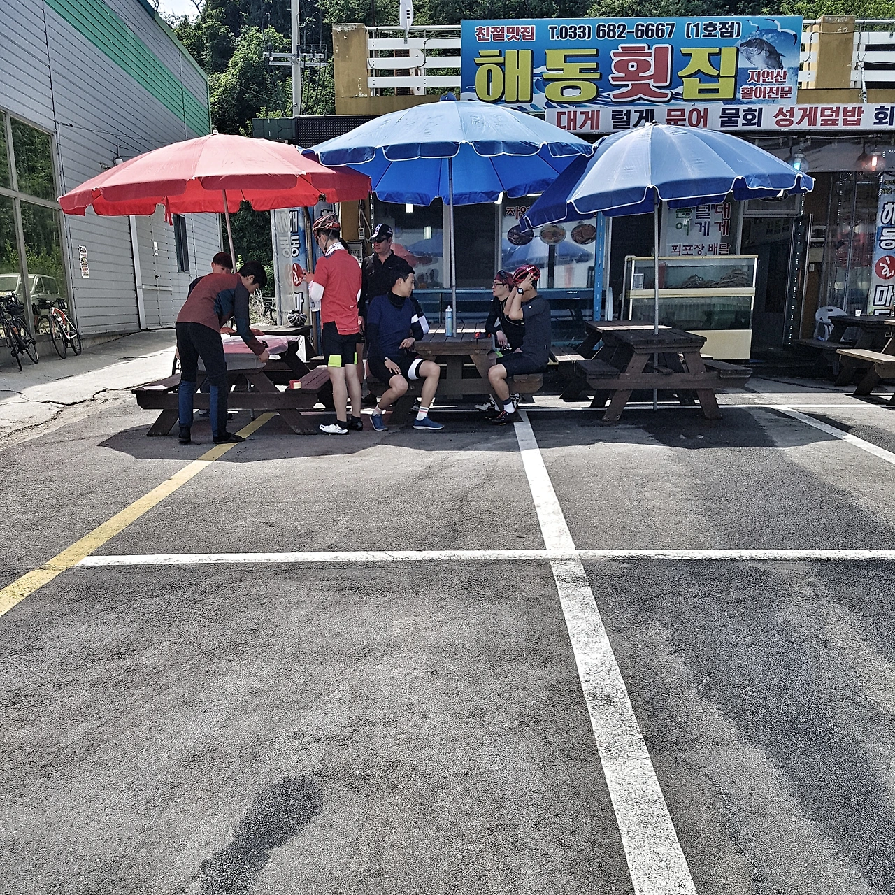 그 친절한 할머니는, 지연된 시간 때문에 이미 허기를 느끼기 시작한 우리 우서라 라이더들에게 "자전거는 먹고 타~, 힘이 있어야지~" 라고 하시며, 맛집을 소개해주셨다. 북천철교인증센터를 지나 점심식사를 하려 했던 계획을 바꾸어, 이곳 대진항에서 점심식사를 하기로 계획 변경~. '배고파 ㅠㅠ'