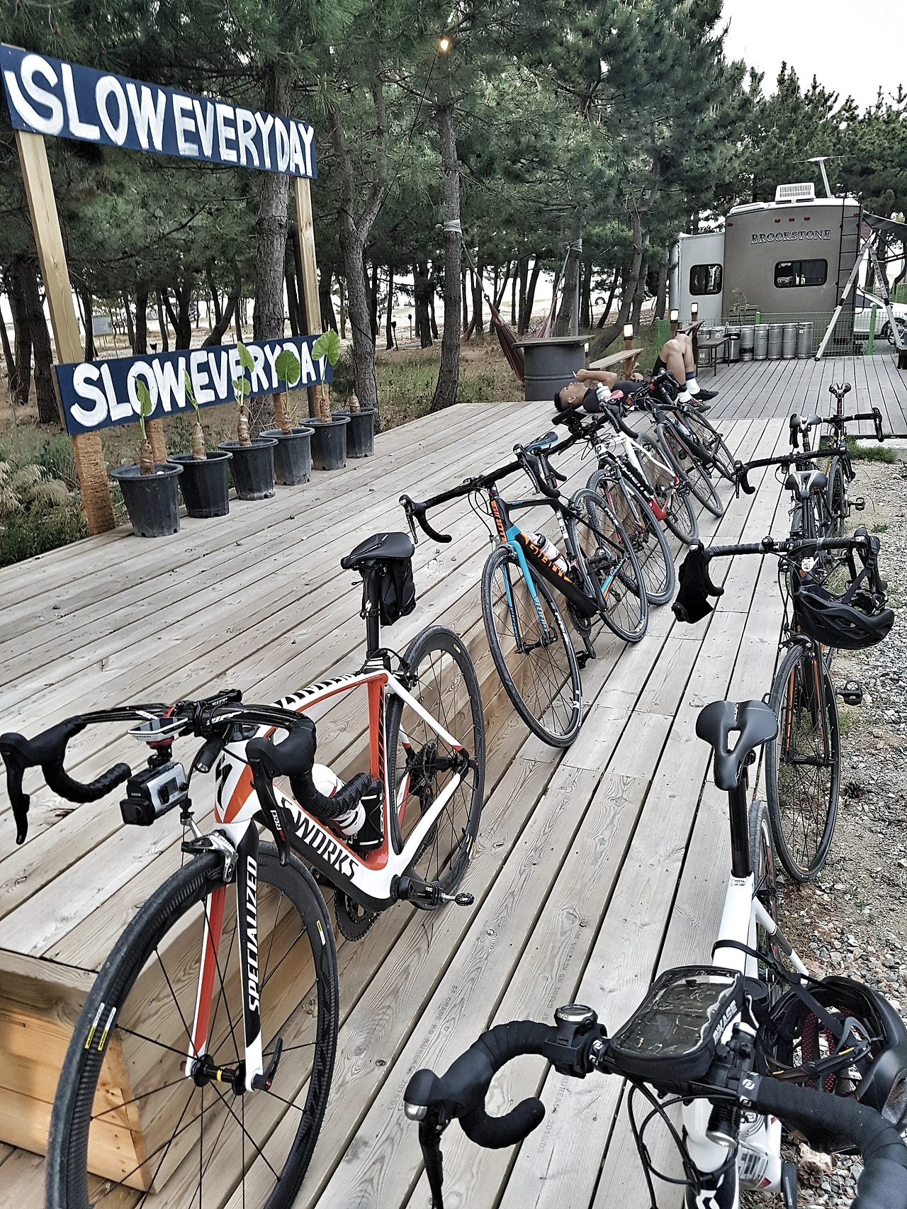 오랜 라이딩으로 지친 근육을 위한 달콤한 휴식과 그 지역의 맛을 음미하는 시간.
