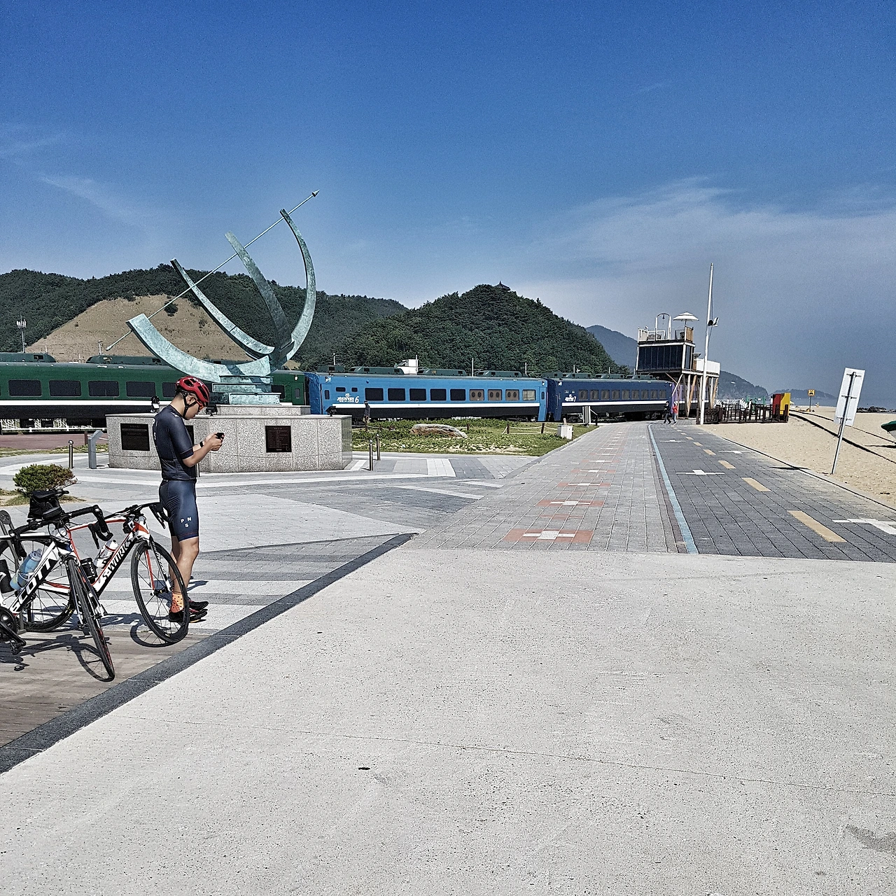 공원이 꽤 잘 조성되어 있고, 한눈에도 주변에 상업화된 먹거리와 즐길거리들이 가득하다. 꾀 넓은 지역인데, 새해 첫 해돋이에는 발 디딜 틈 없이 관광객으로 들어찬다고 하니, 그땐 지금처럼 자전거로 여유롭게 누비는 그런 자유로움은 없을 듯하다. 한동안 휴식을 가진 후, 망상해변을 향해 출발.