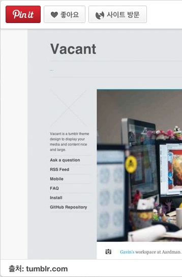웹 사이트를 통해서 핀 할 경우 자동으로 이렇게 출처를 표기해 주며 이미지를 클릭하면 해당 사이트로 이동됩니다. 이미지를 가져오기만 하는 것이 아니라 사이트를 핀 하는 개념이기 때문에 저작권 문제로부터 어느 정도 자유로울 수 있는 점입니다.