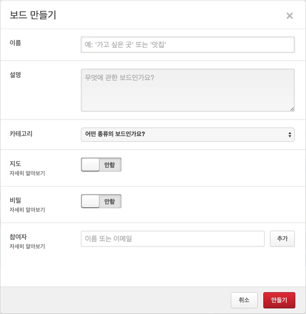 핀 지도를 만들거나 다른 사람들은 볼 수 없는 비밀 보드를 만들 수도 있습니다.