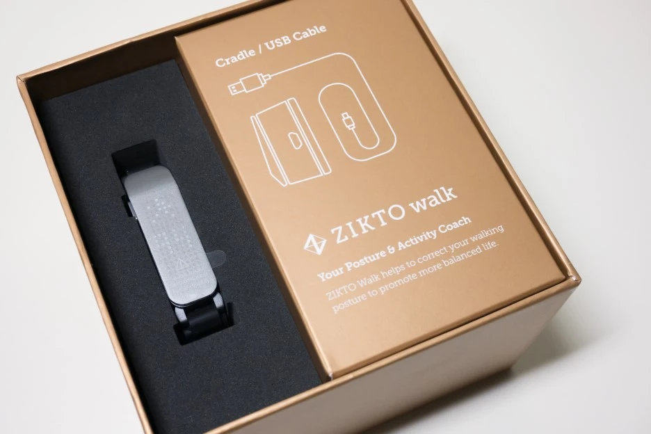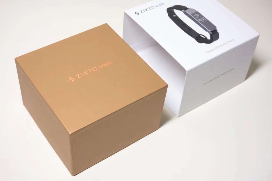 겉 상자를 옆으로 밀면 윗면에 ZIKTO Walk 로고가 새겨진 금색 상자가 나타납니다.