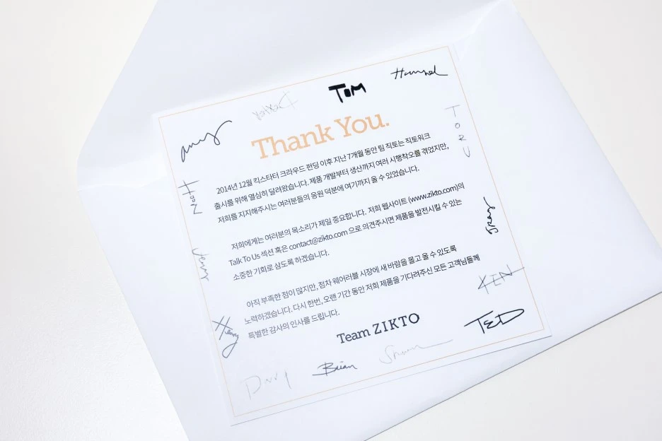 팀 직토의 감사 메세지가 들어 있습니다. 뒷면은 영어 버전이고요. 후원으로 출시된 제품과 함께 이런 메세지까지 받아보다니 뿌듯하네요.