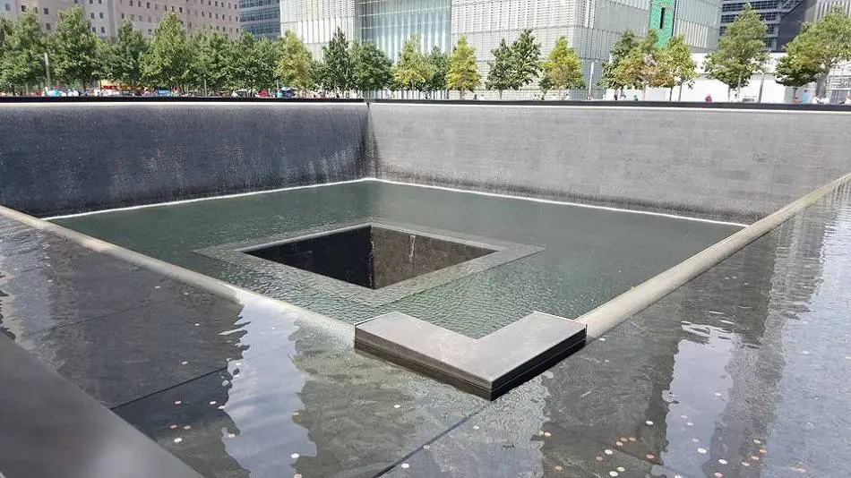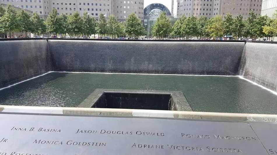 분수 주위로 911 테러로 목숨을 잃은 사람들의 이름을 새겨 놓았습니다.
