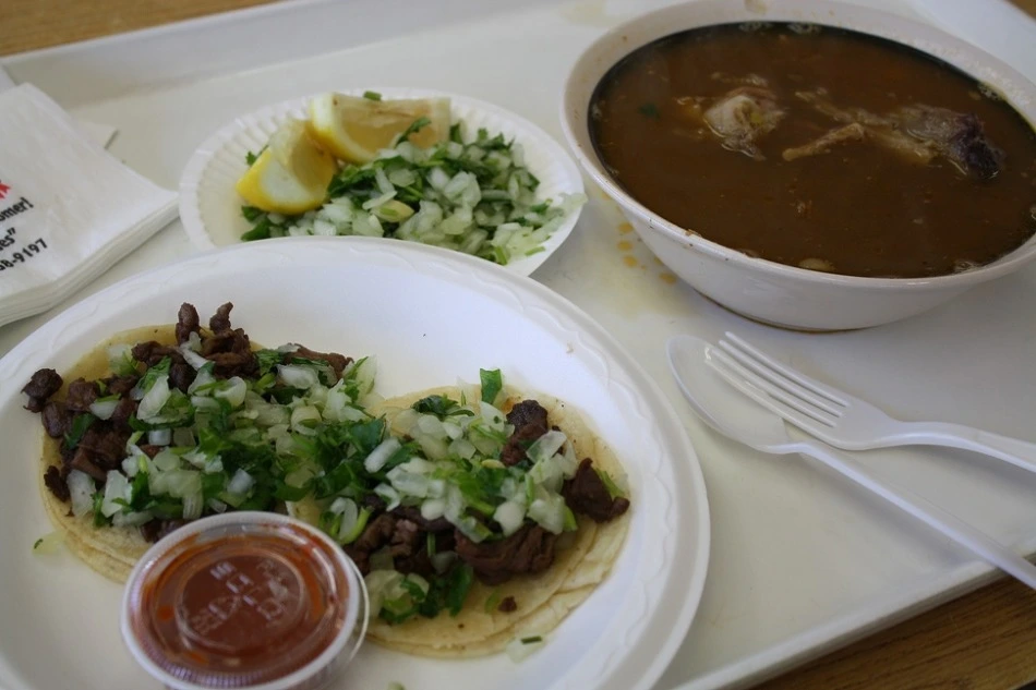 양고기 수프에 타코를 시켰습니다.