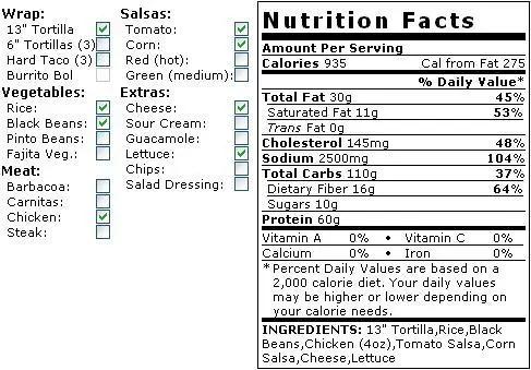 CHIPOTLE 버리도 칼로리 935 kcal