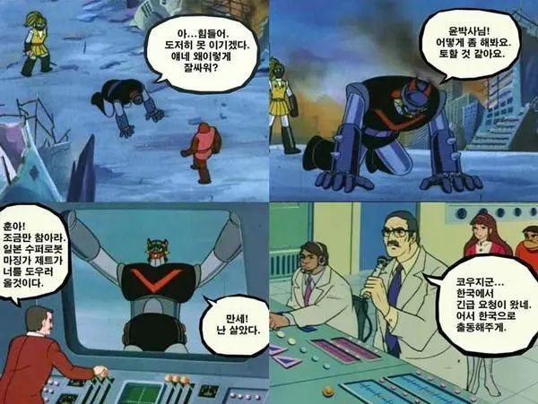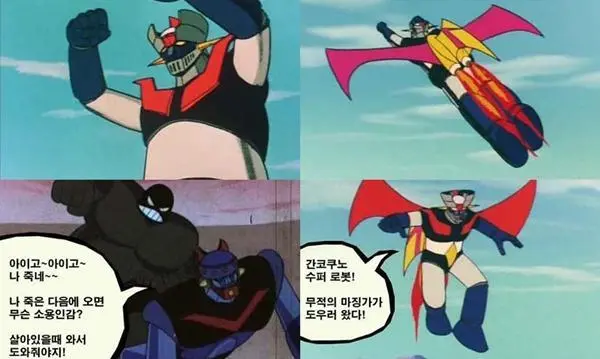 아주 어릴 적에 마징가와 로봇 태권 V가 대결을 하면