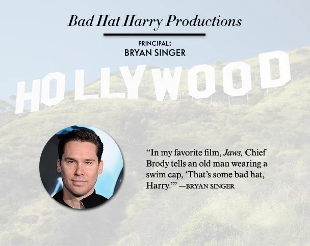 충격 반전의 거작 [유주얼 서스 팩스]를 제작 감독하고 X-맨 시리즈로 유명한 브라이언 싱어 감독의 제작사 배드 햇 해리는 그가 좋아하던 영화 죠스의 한 대사 속에서 가져왔다고 합니다. 브라이언 싱어 감독은 게이라는 소문이 할리우드에서 무성한데.... 헤이 유갓 배드 햇 브라이언!!