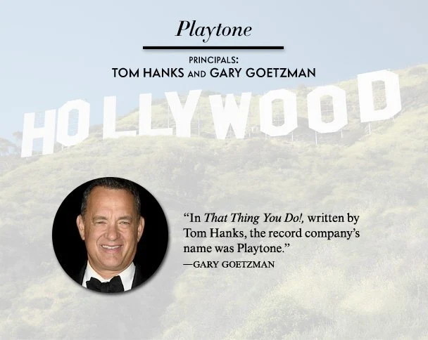 탐 행크스의 영화 [In That Thing You Do!] 속 음악 레코드 제작사의 이름이 바로 [Playtone]이라서 자신의 제작사도 똑같이 그렇게 만들었다고...
