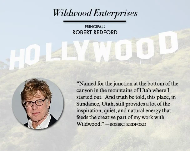 로버트 레드포드의 와일드우드라는 제작사 이름은 유타주의 한 캐년의 연결 지역에서 따왔는데 이 유타주 선댄스 지역 속에 가면 아직도 많은 영감과 에너지를 얻는다고 합니다.