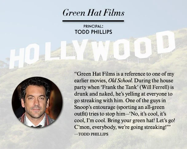 영화[행오버 HANGOVER] 시리즈로 유명한 GREEN HAT 영화사는 코미디언 배우 Will Ferrell이 Old School이라는 영화를 찍으면서 술에 취해 나체로 소동을 부리는 것을 말리다가 영감을 얻어서 지은 이름이라고 합니다.