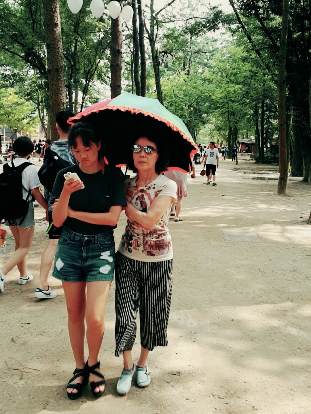 양산을 쓰고 걷는 엄마의 뒷모습에