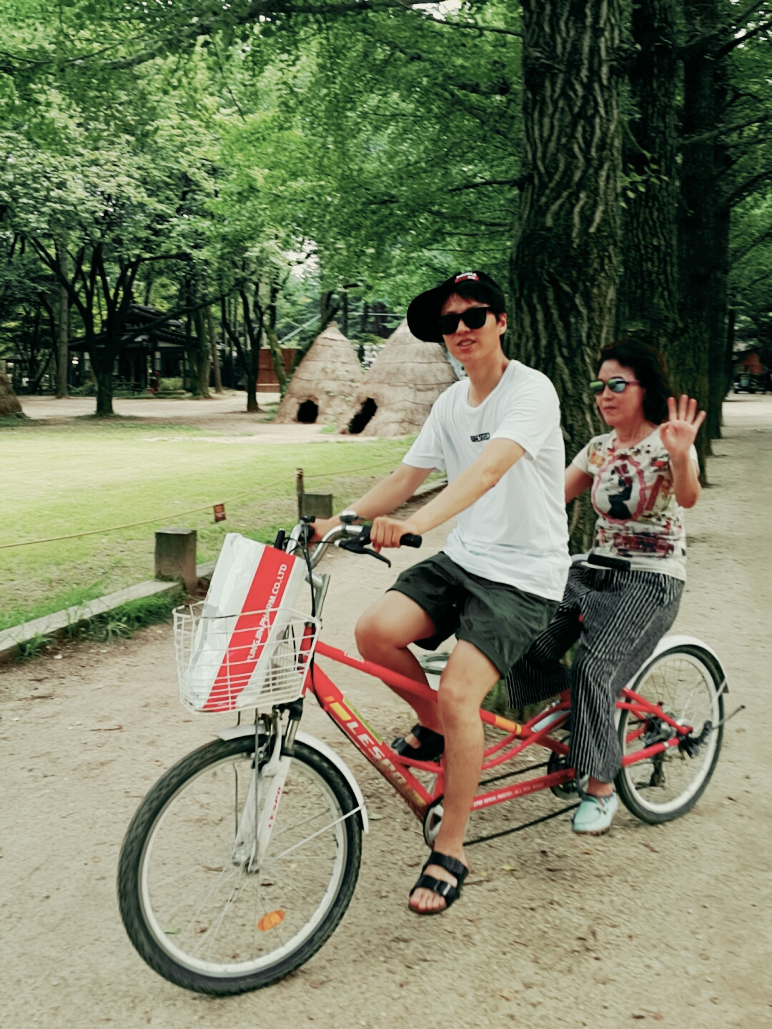 엄마와 나는 잠시 고민하다 커플 자전거를 선택했는데