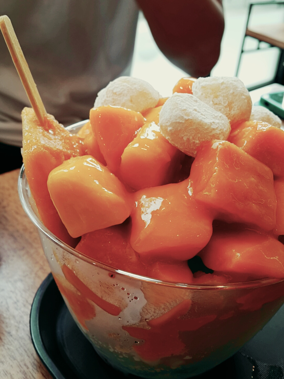빙수 두 개를 시켜놓고 더위도 식히고 다리도 쉬었다