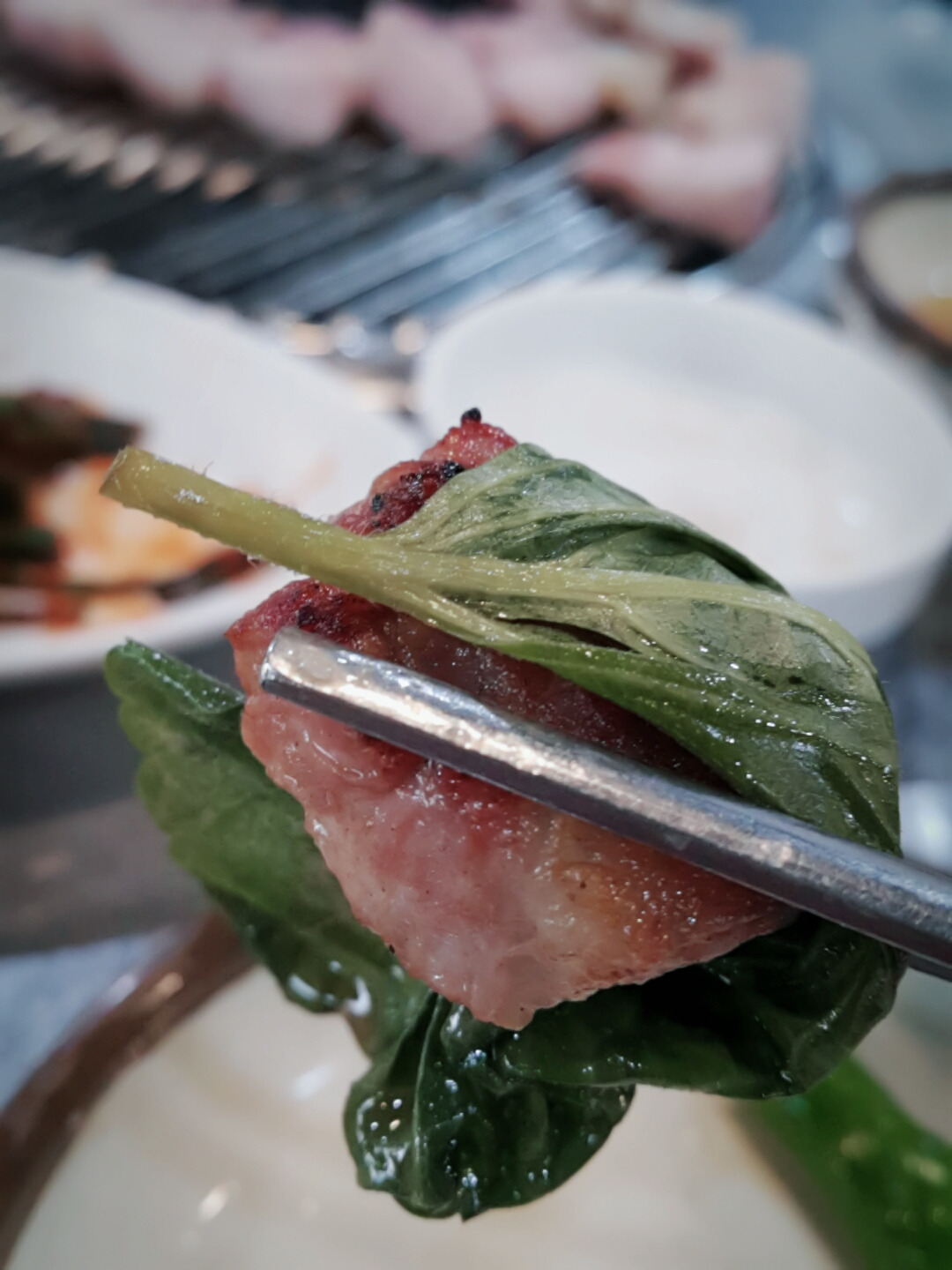 "깻잎에 싸서 먹어봐~ 맛있다~"